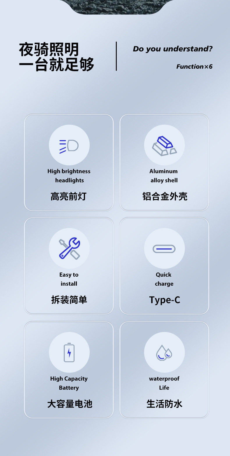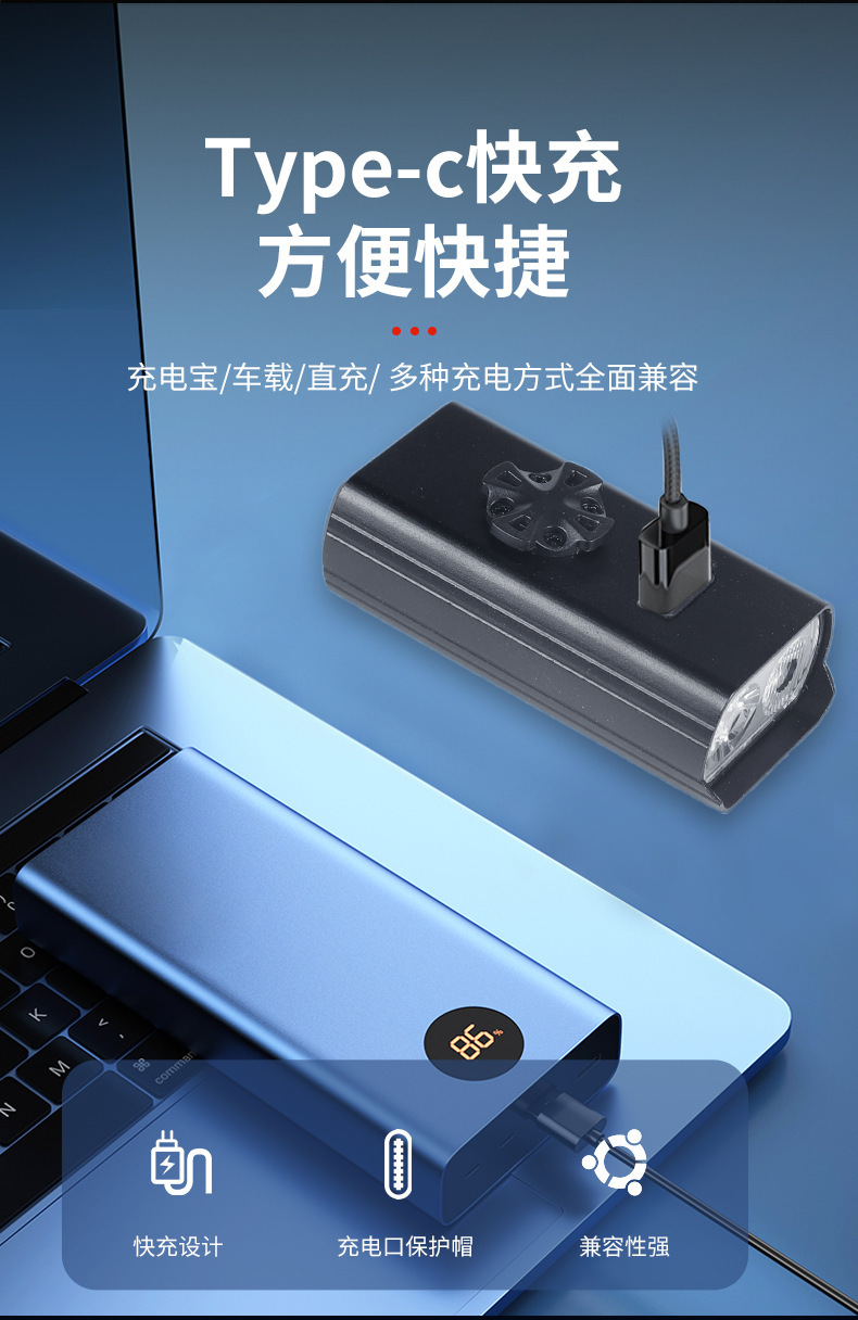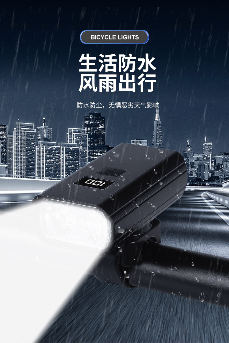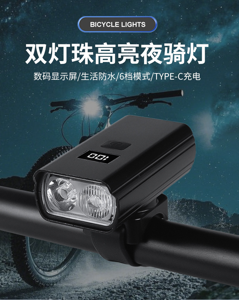 USB 디지털 디스플레이 자전거 라이트 LED 충전식 산악 자전거 전면 램프 방수 사이클링 장비 자전거 액세서리