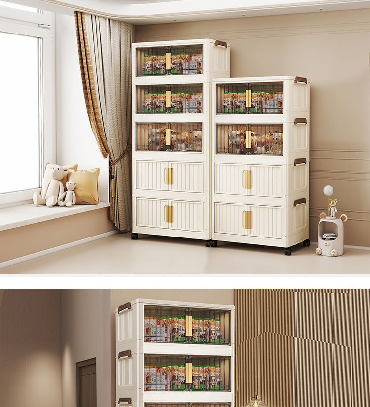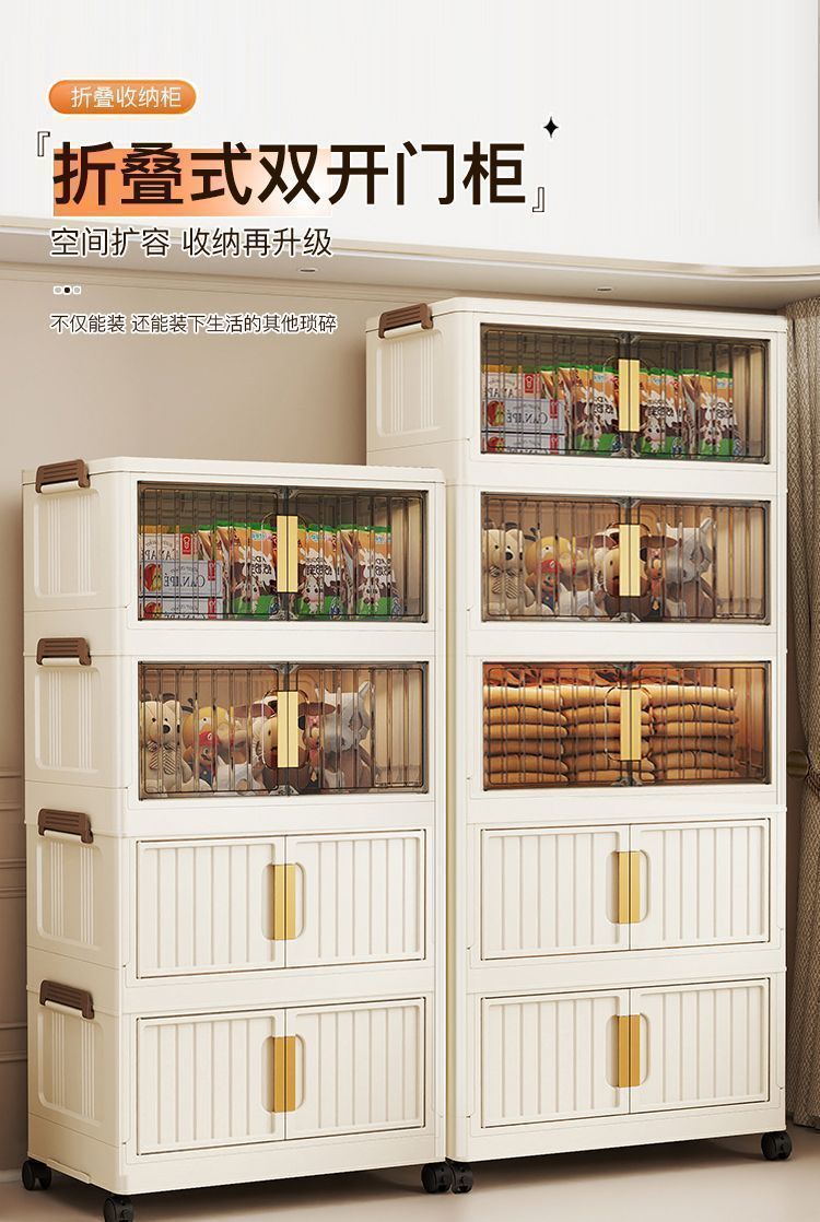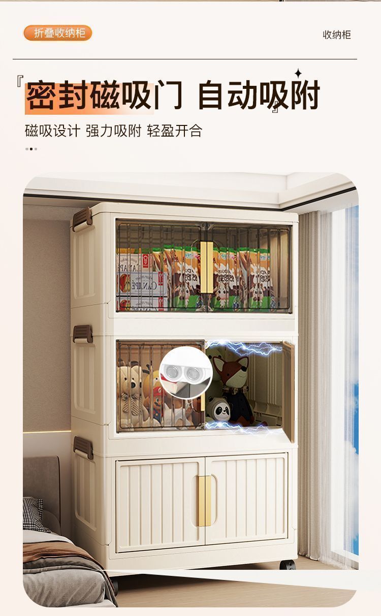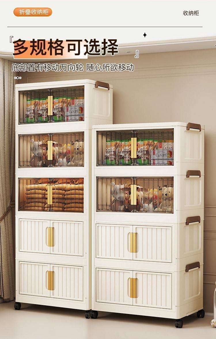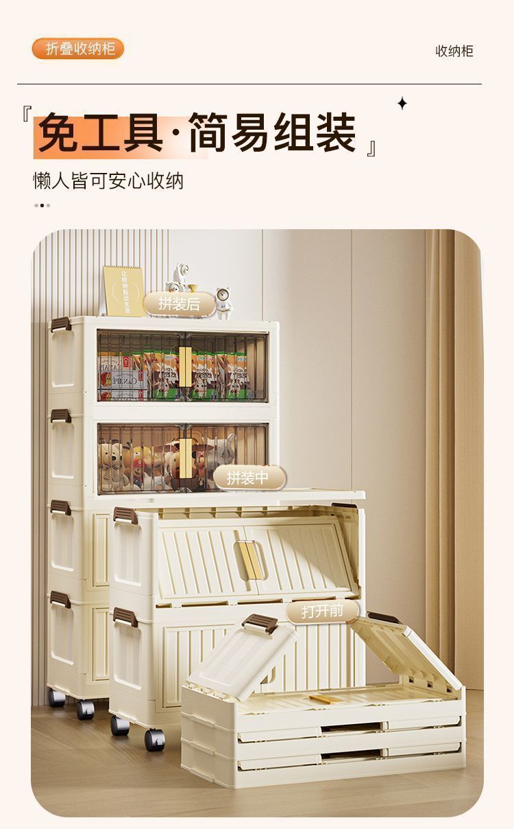 설치가 필요없는 접이식 보관함 가정용 간단한 장난감 보관 캐비닛 보관함 스낵 캐비닛 주방 플라스틱 보관 캐비닛