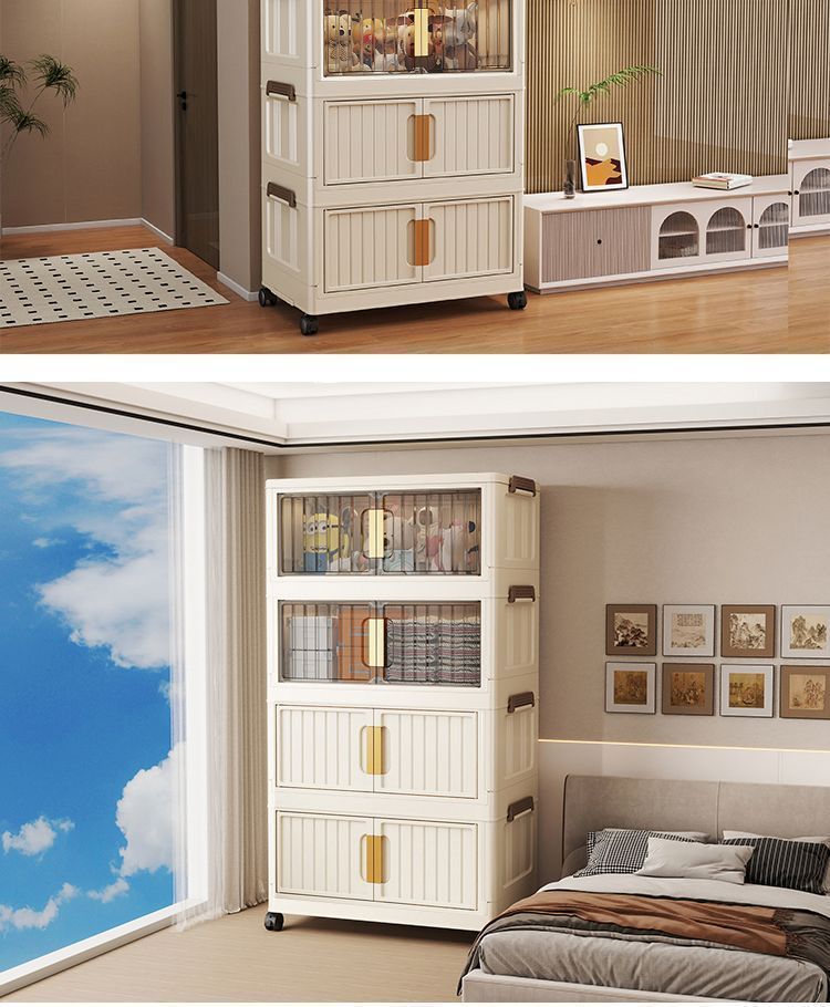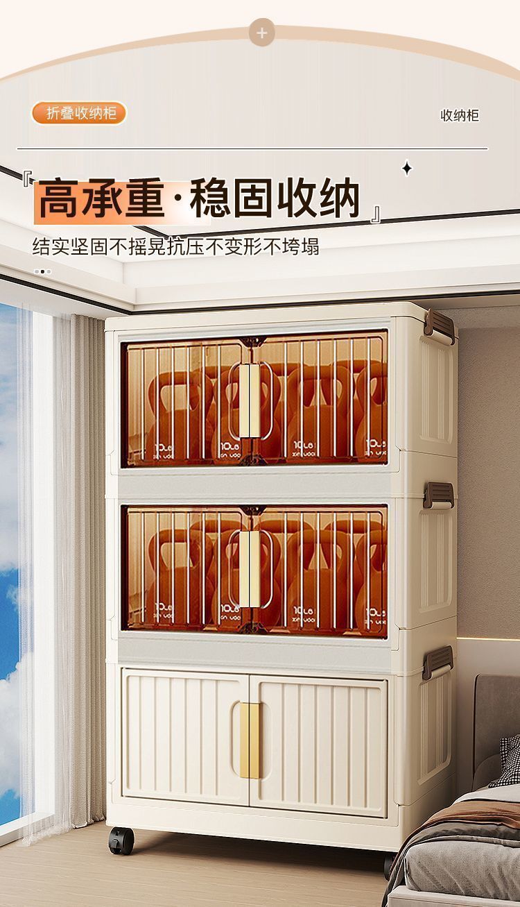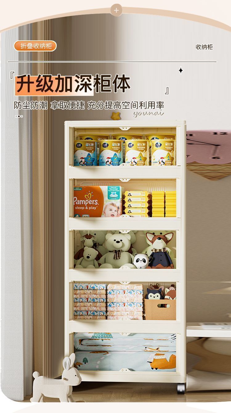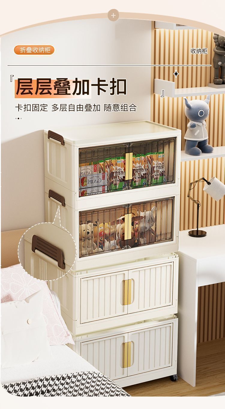 설치가 필요없는 접이식 보관함 가정용 간단한 장난감 보관 캐비닛 보관함 스낵 캐비닛 주방 플라스틱 보관 캐비닛