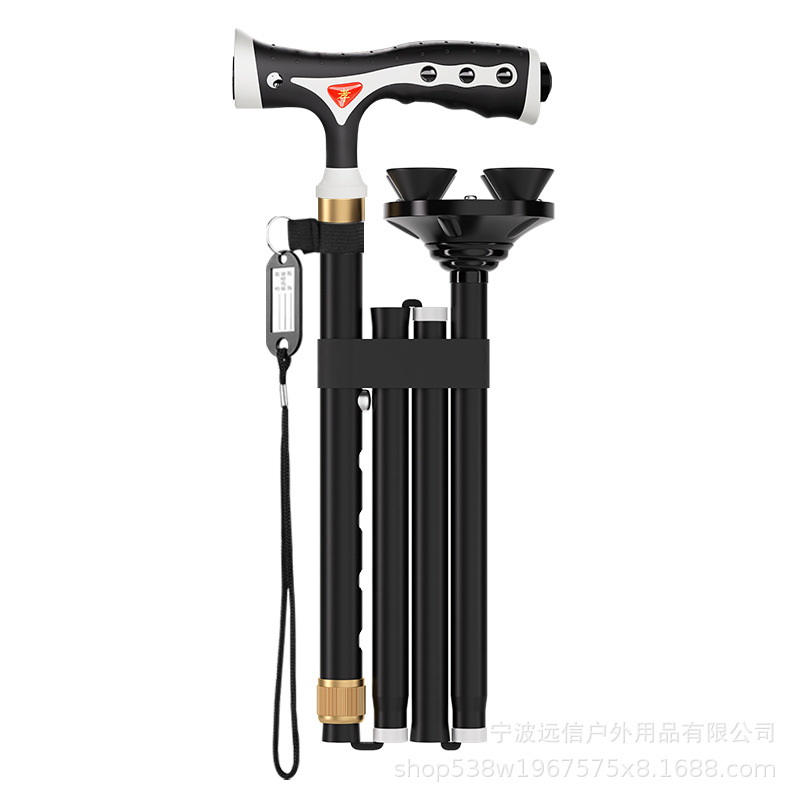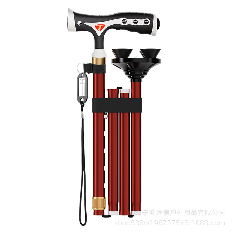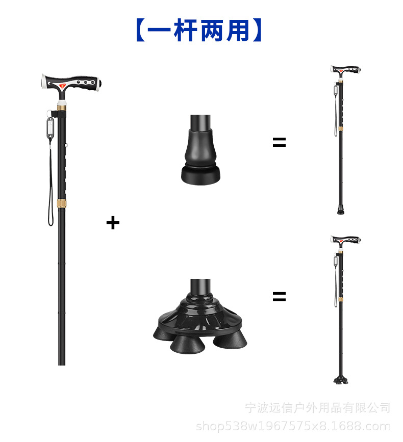 노인을 위한 조명이 있는 알루미늄 합금 지팡이, 고무 마그넷이 있는 지팡이, 회전식 4발 이중 목적 지팡이, 접이식 및 휴대용 도매스토어 가기