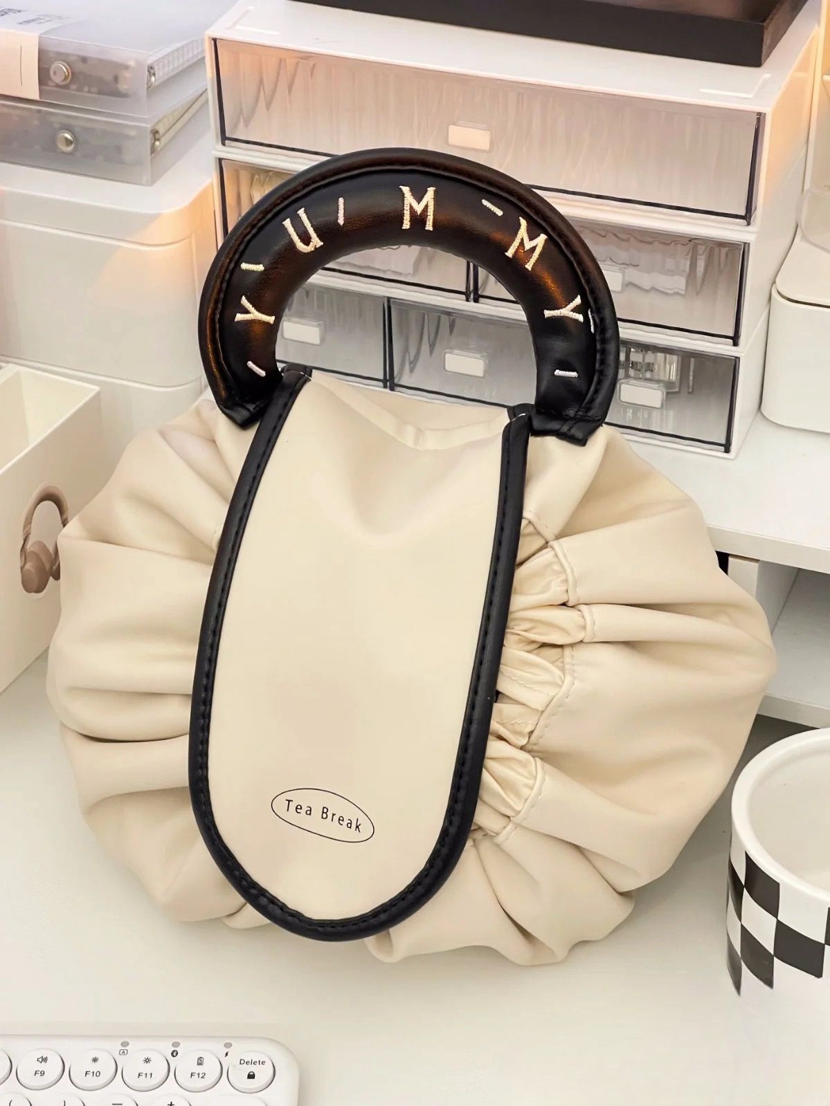 게으른 사람들을 위한 대용량 휴대용 여행용 화장품 가방, 조임끈이 달린 가죽 세면도구 및 스킨케어 제품 수납 가방