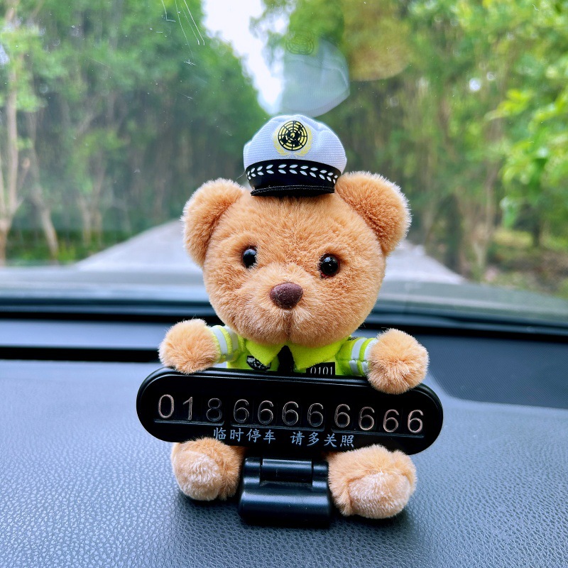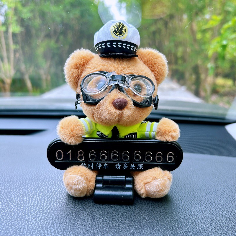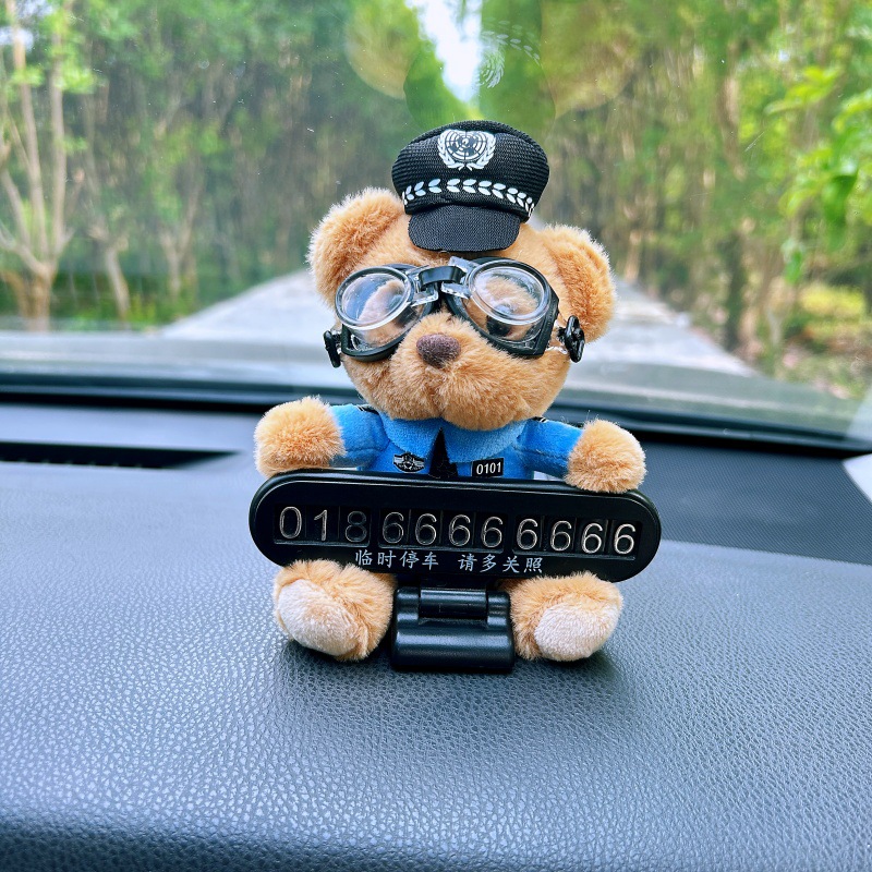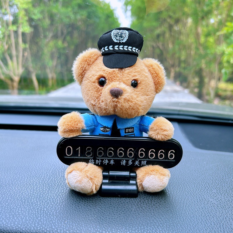교통 경찰 곰 인형 경찰차 주차 전화번호판 임시 주차 카드 번호 장식 차량용 창의적인 자동차 액세서리스토어 가기
