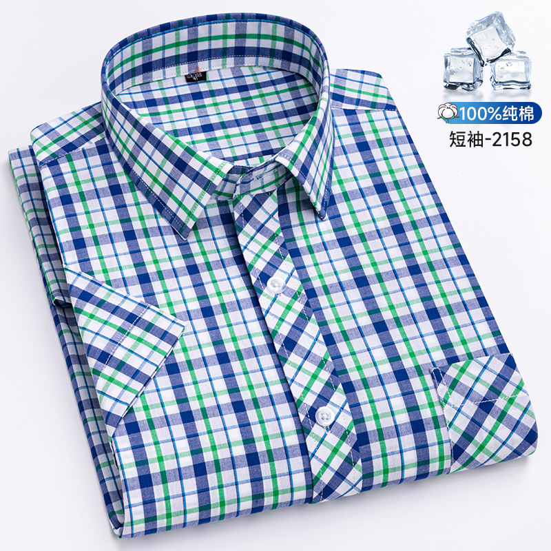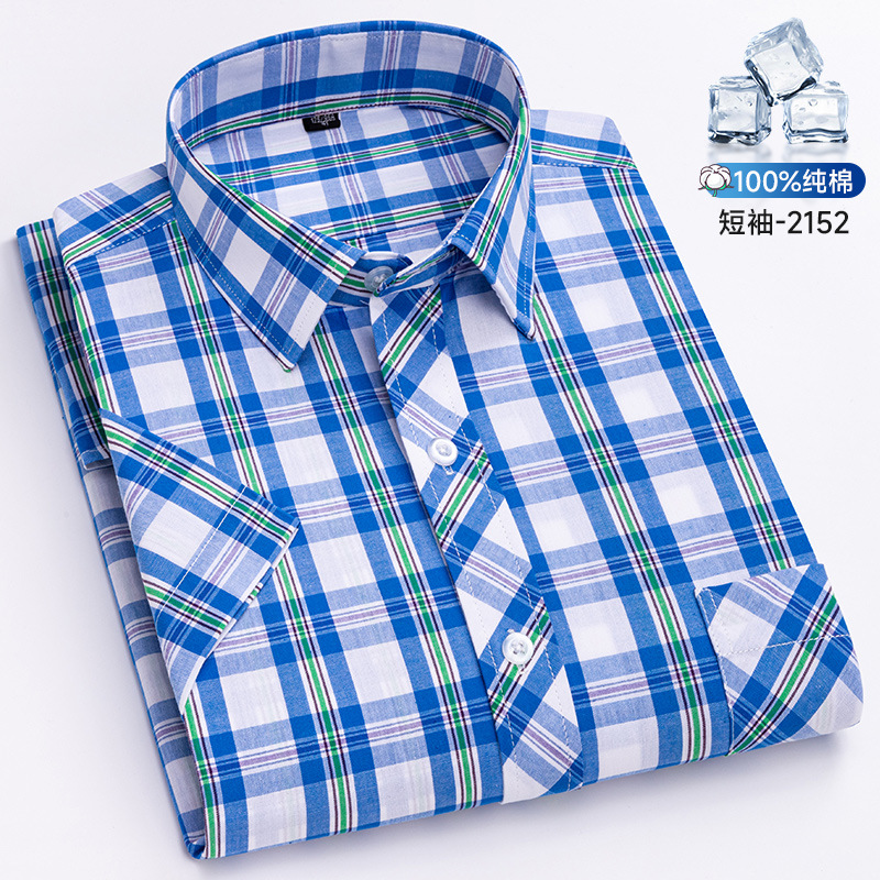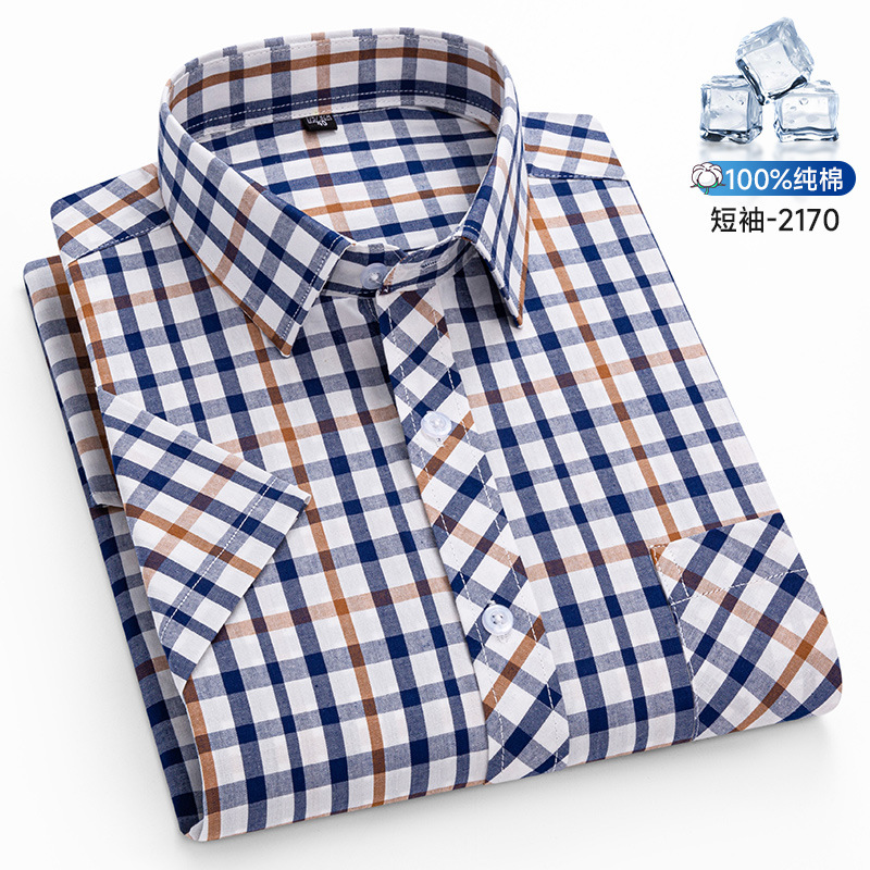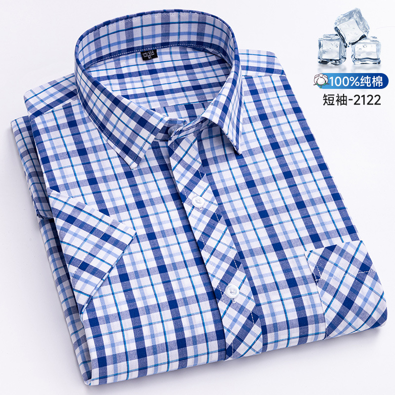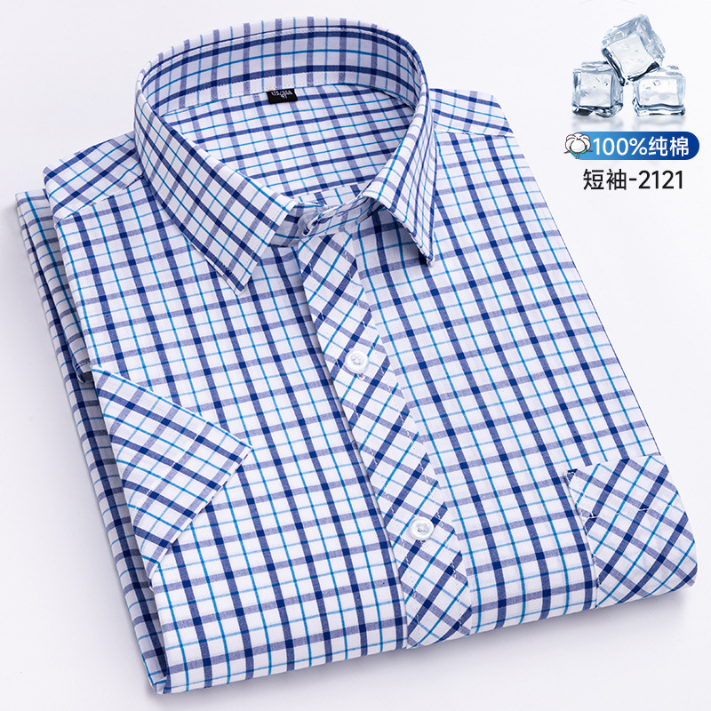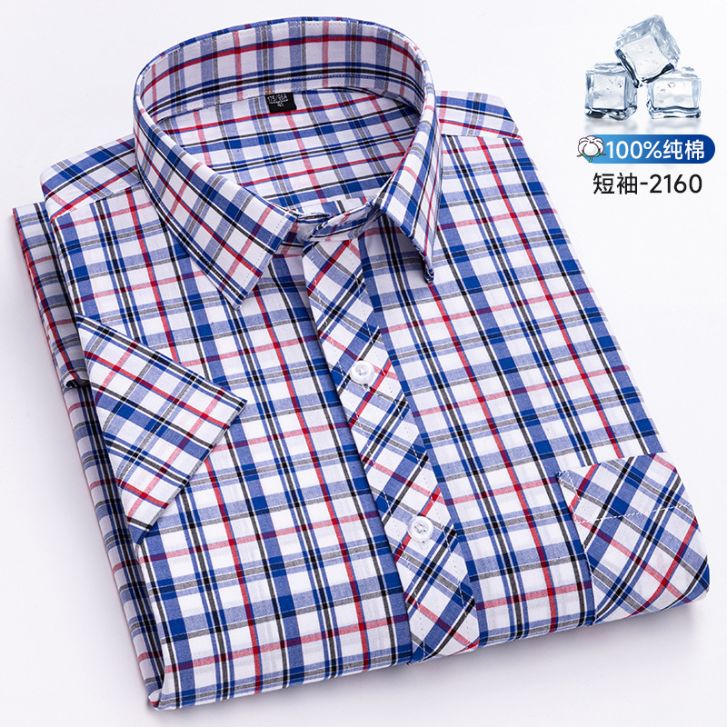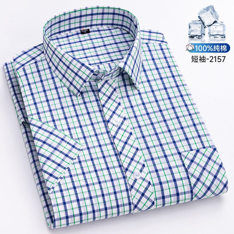 새로운 100% 면 옥스포드 체크 무늬 셔츠 남성 캐주얼 패션 반팔 젊은 및 중년 반팔 셔츠 도매스토어 가기