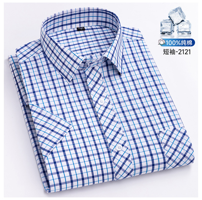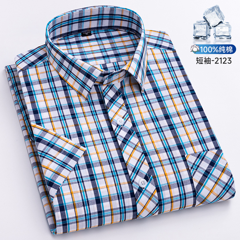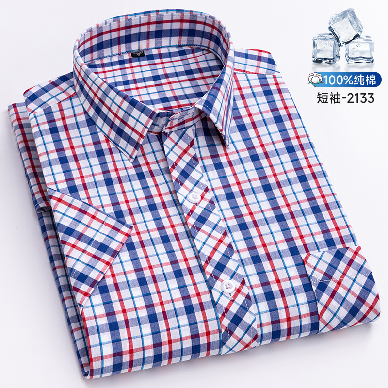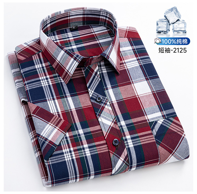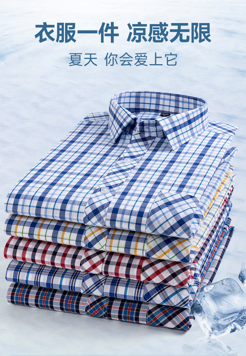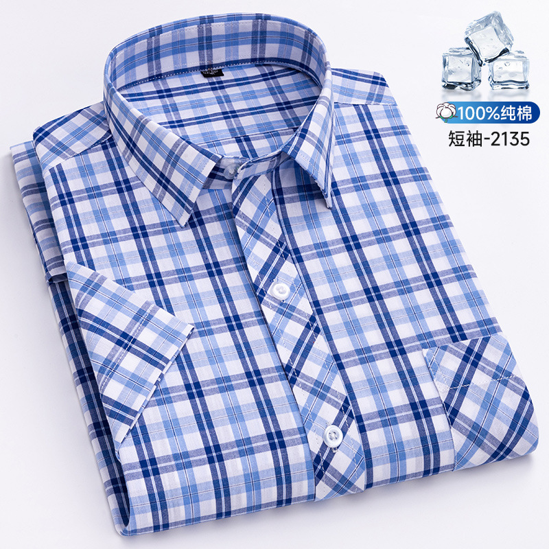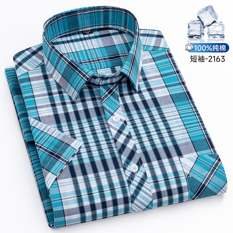 새로운 100% 면 옥스포드 체크 무늬 셔츠 남성 캐주얼 패션 반팔 젊은 및 중년 반팔 셔츠 도매스토어 가기