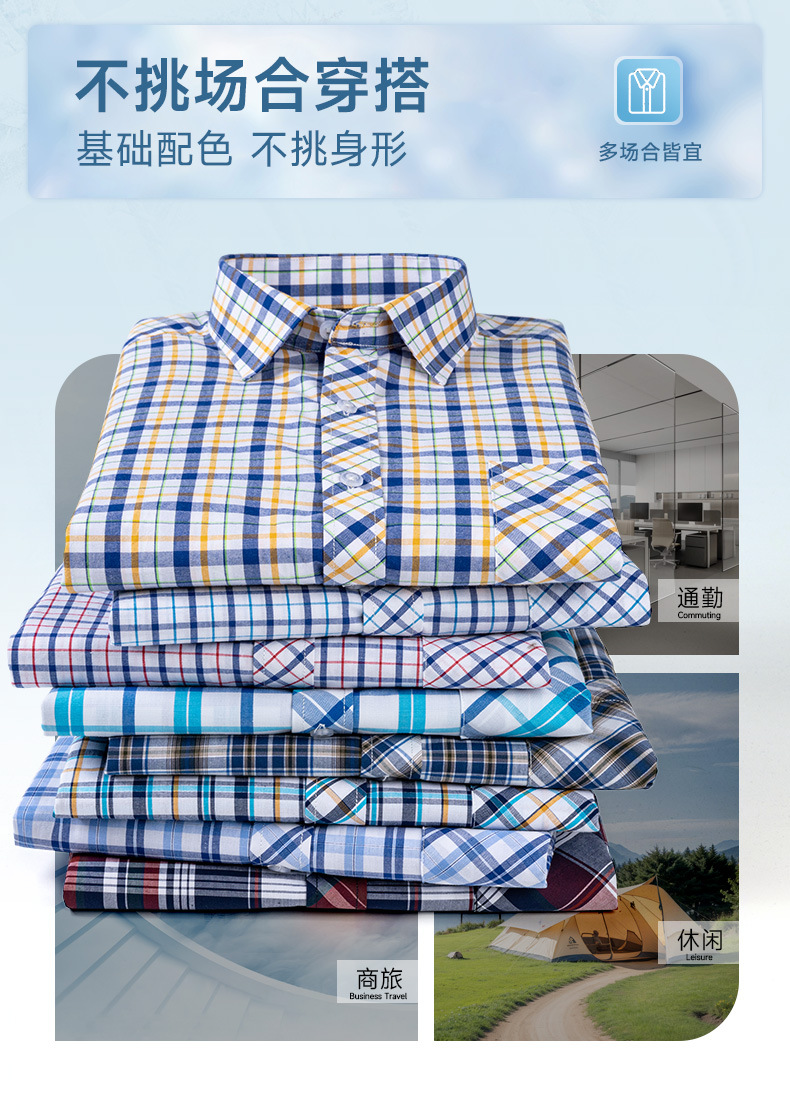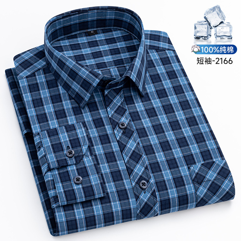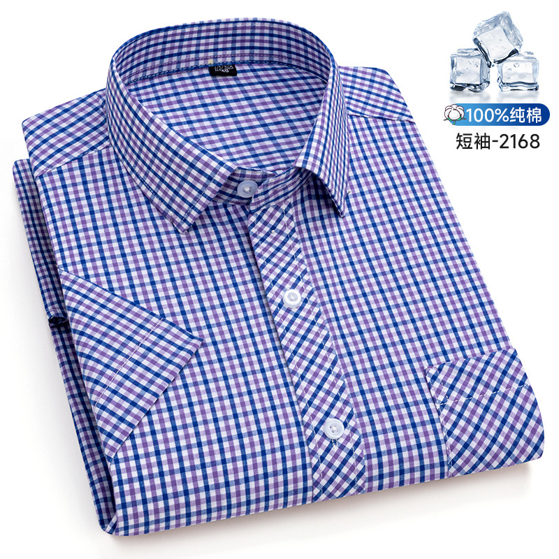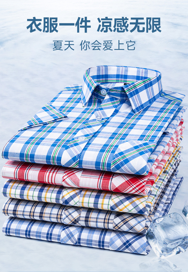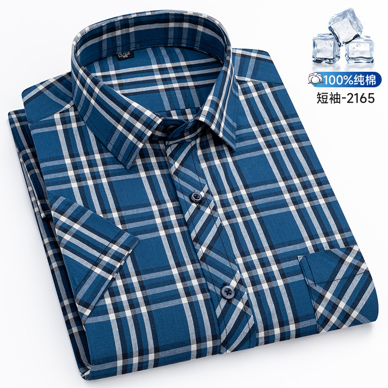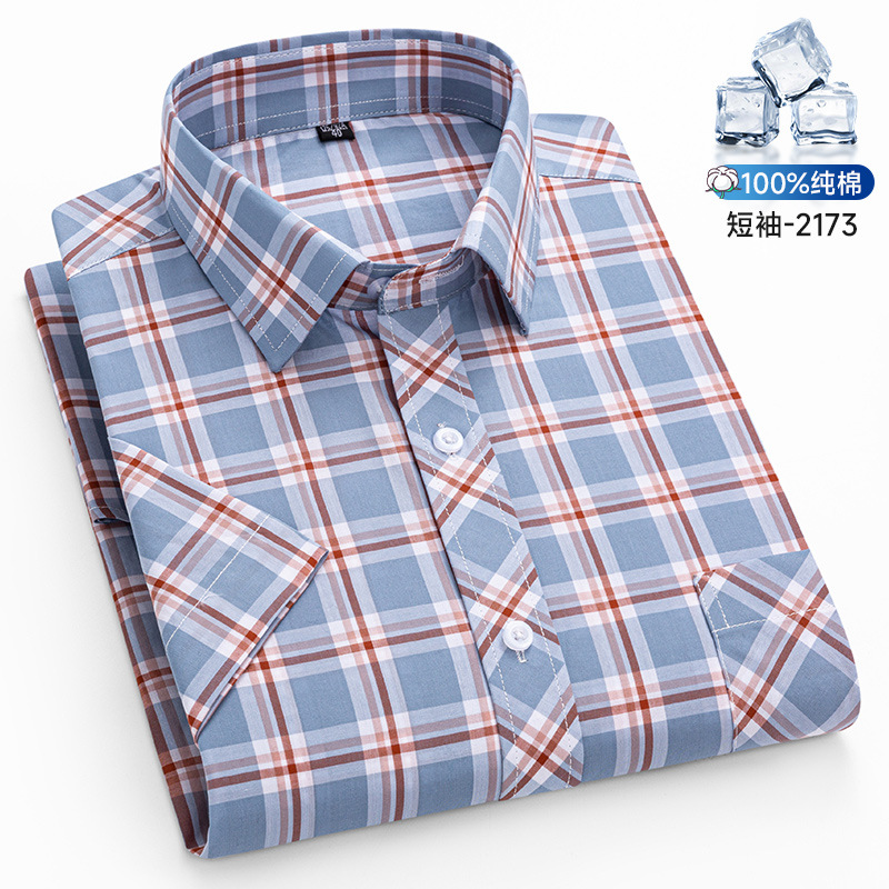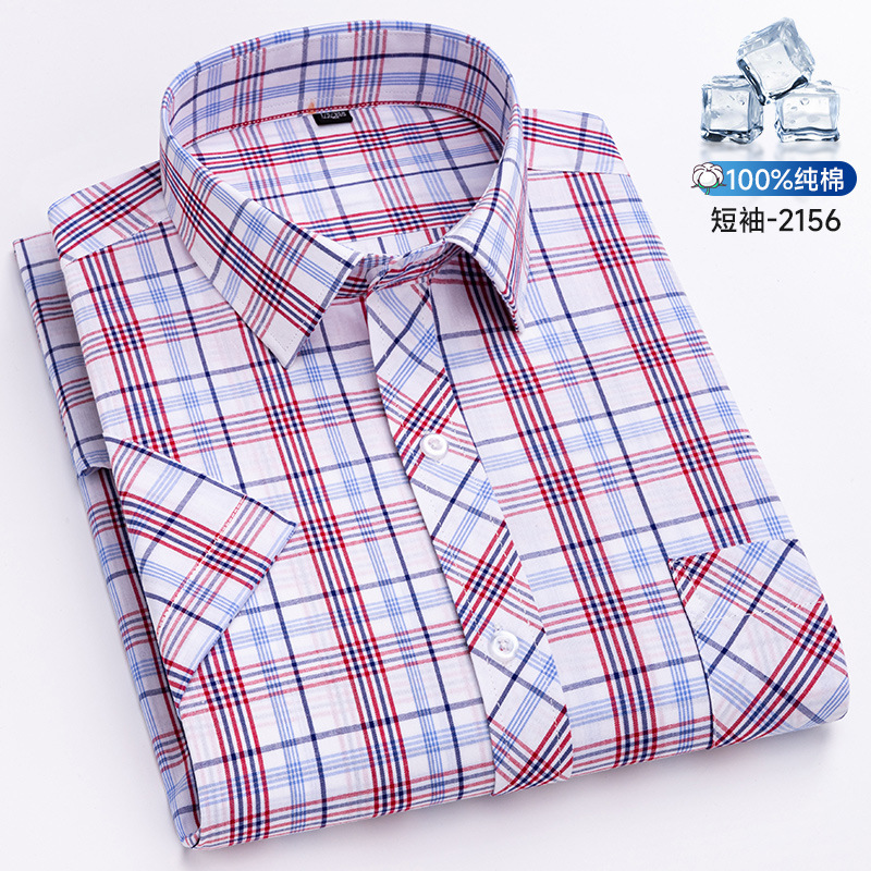 새로운 100% 면 옥스포드 체크 무늬 셔츠 남성 캐주얼 패션 반팔 젊은 및 중년 반팔 셔츠 도매스토어 가기