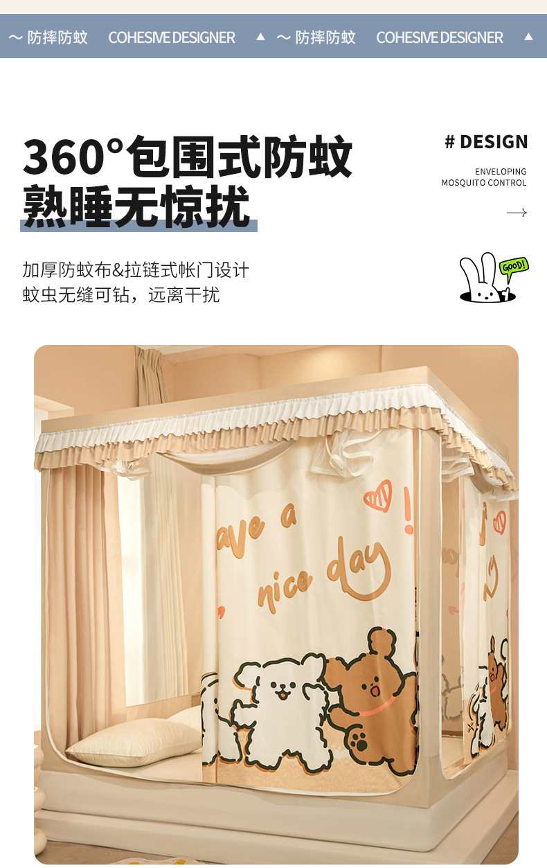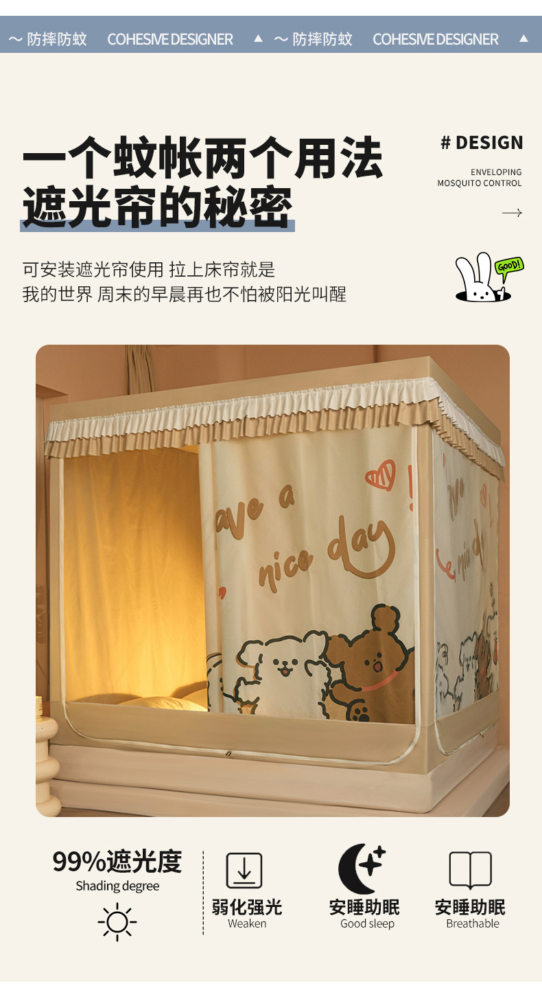 가정용 침실용 몽골리안 돔 모기장 2025 새로운 설치가 필요 없는 낙하 방지 어린이 일체형 침대 커튼 풀 커버스토어 가기