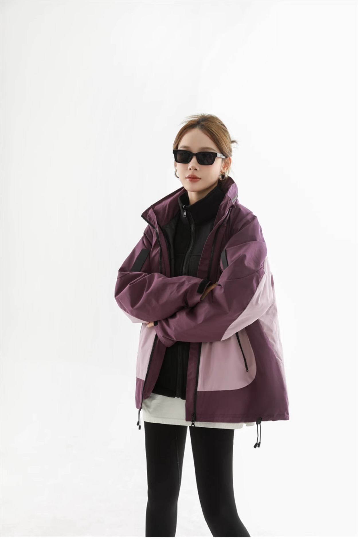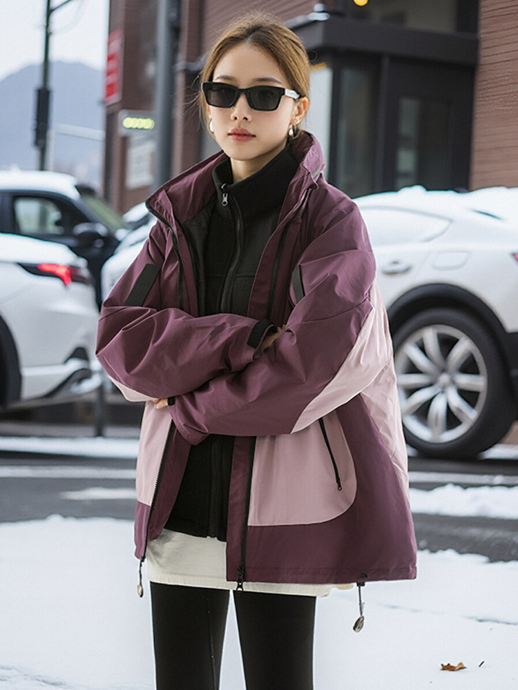 여성을위한 세련된 대비 색 재킷 2025 봄, 가을 새로운 가을, 겨울 야외 캐주얼 방풍 재킷스토어 가기
