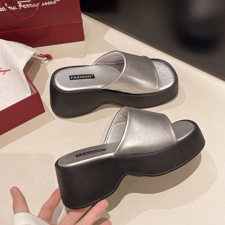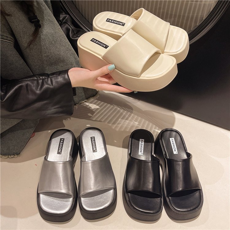 여성을위한 다용도 두꺼운 밑창 슬리퍼 2025 여름 새로운 한국 스타일 틈새 플랫폼 신발 가정 및 야외 착용 오픈 발가락 샌들스토어 가기