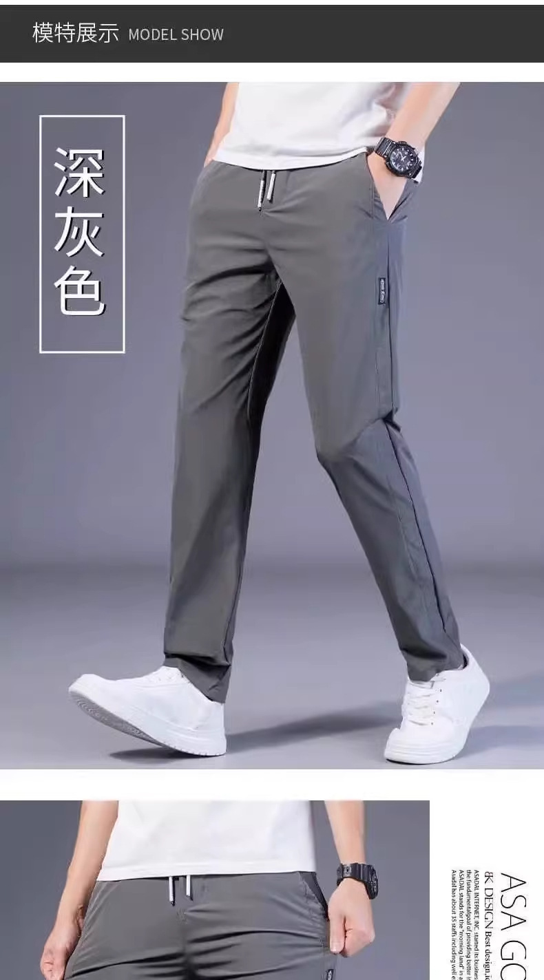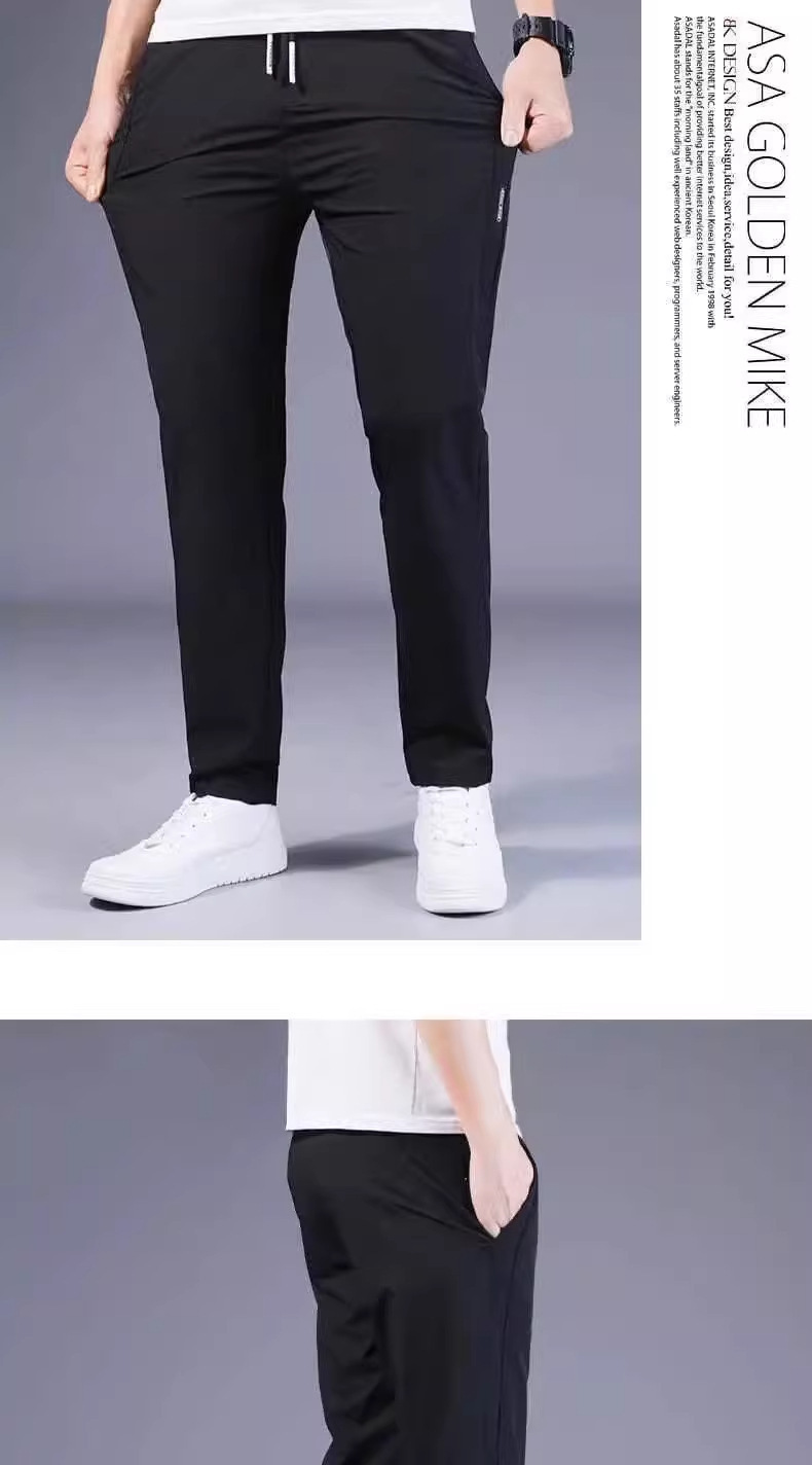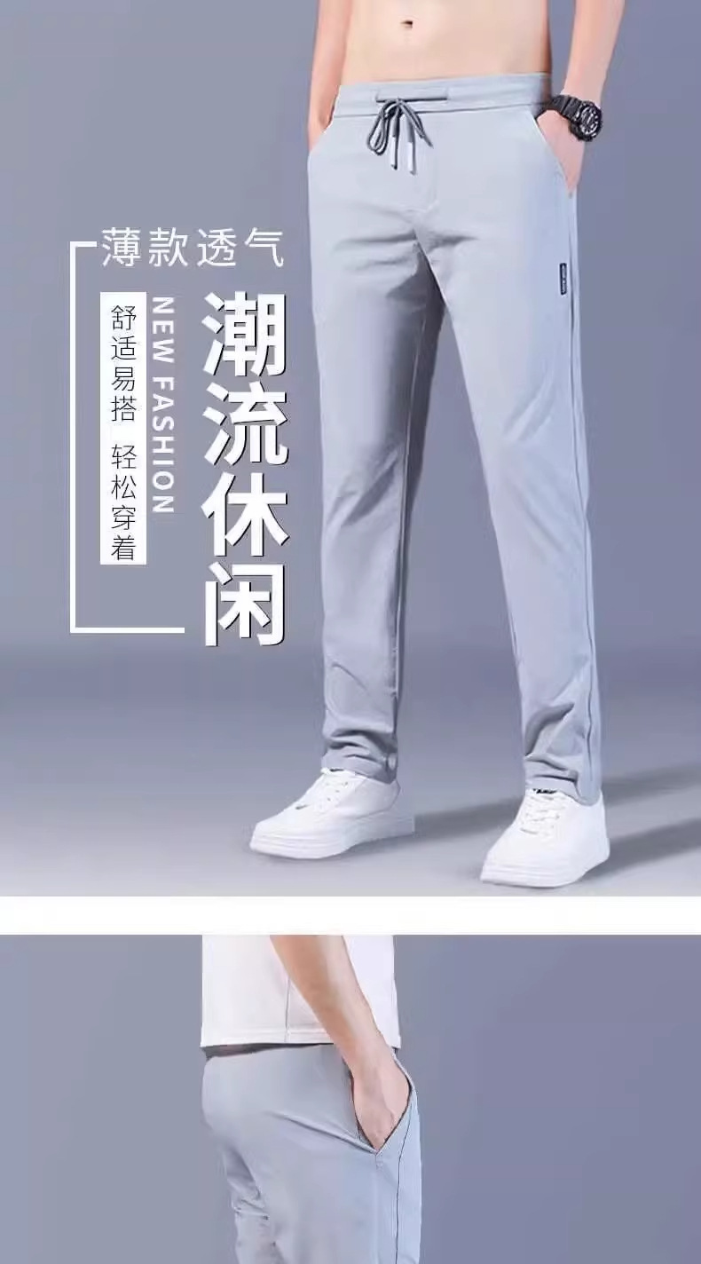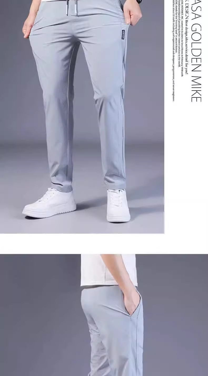 아이스 실크 캐주얼 바지 남성 여름 얇은 유행 탄성 초박형 스포츠 바지 슬림 피트 바지 2025 남성 바지스토어 가기