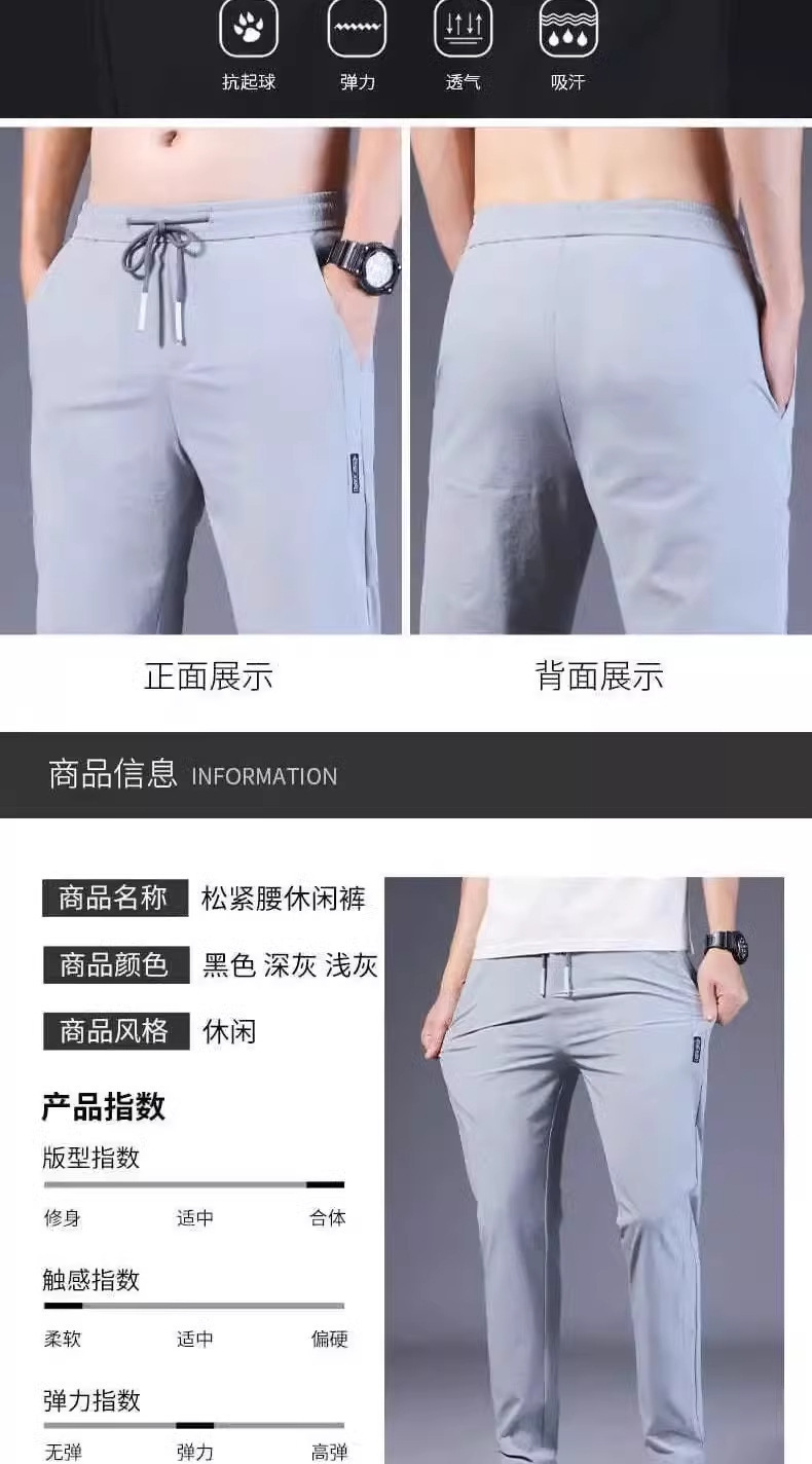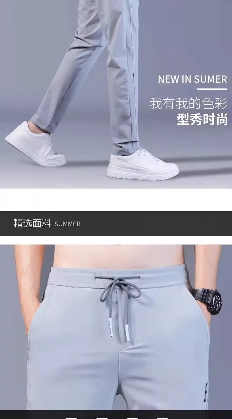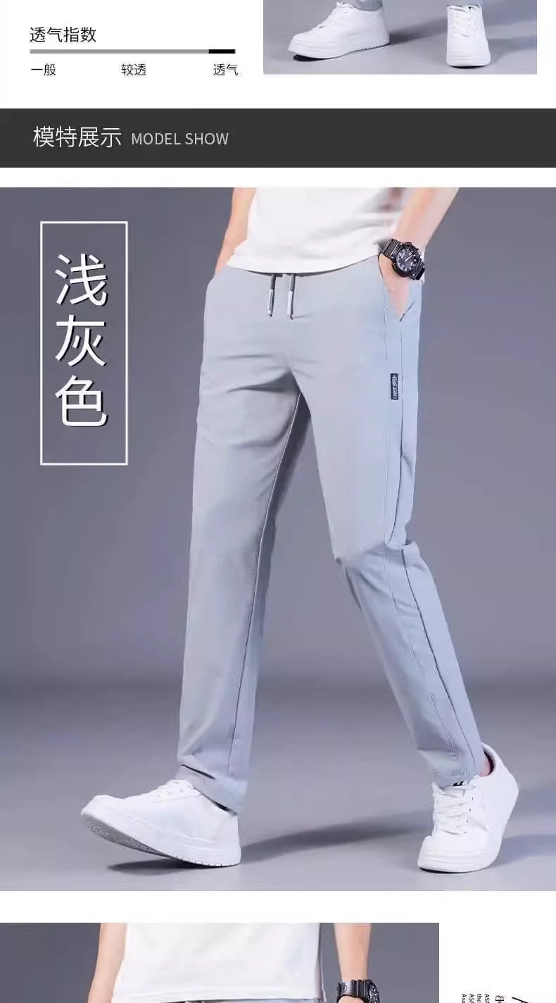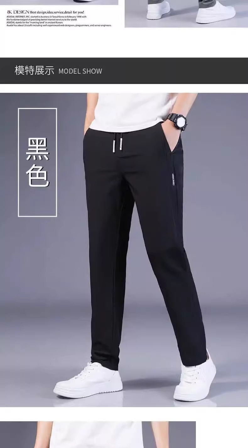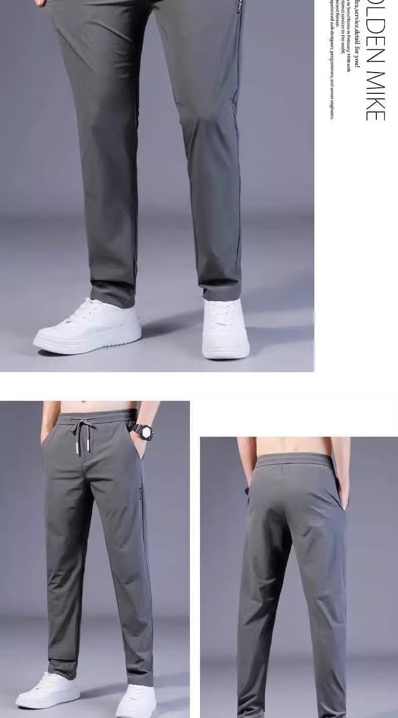 아이스 실크 캐주얼 바지 남성 여름 얇은 유행 탄성 초박형 스포츠 바지 슬림 피트 바지 2025 남성 바지스토어 가기