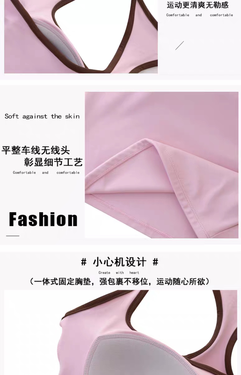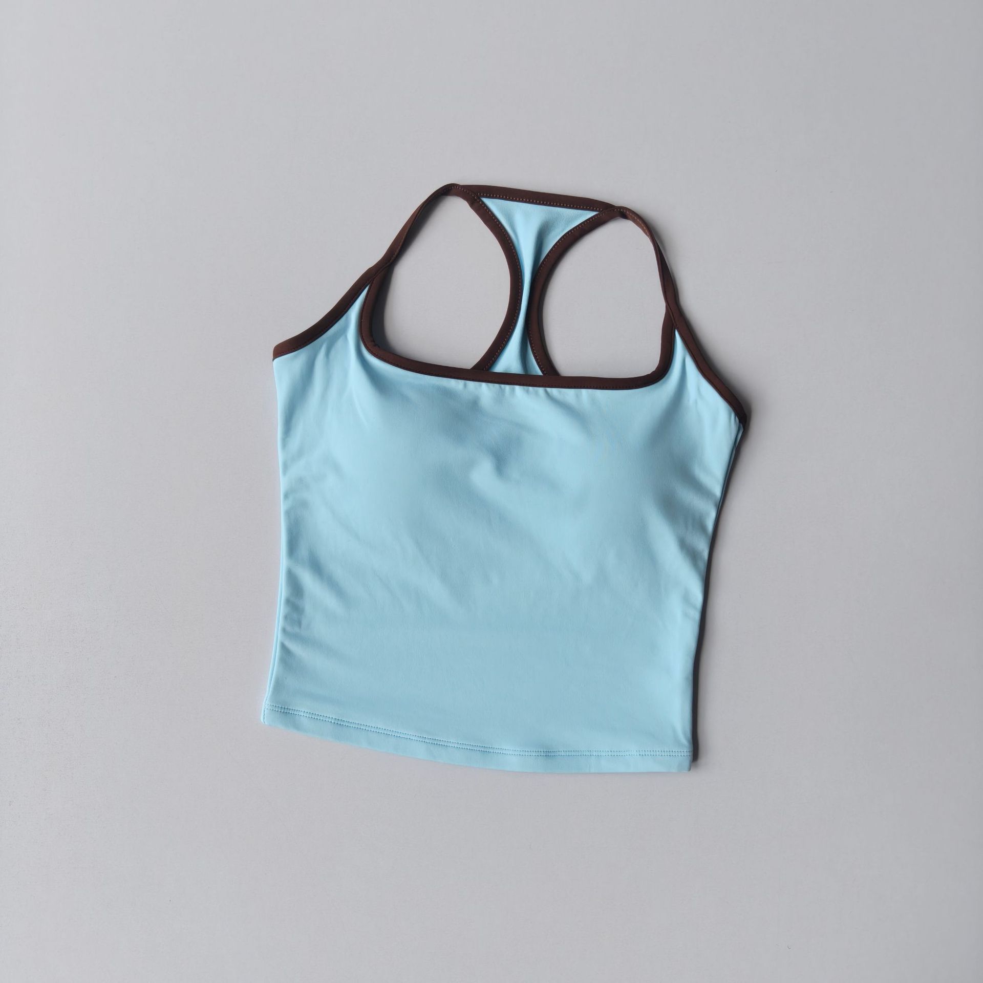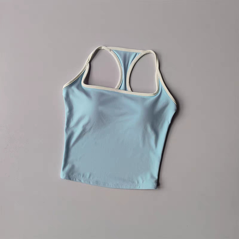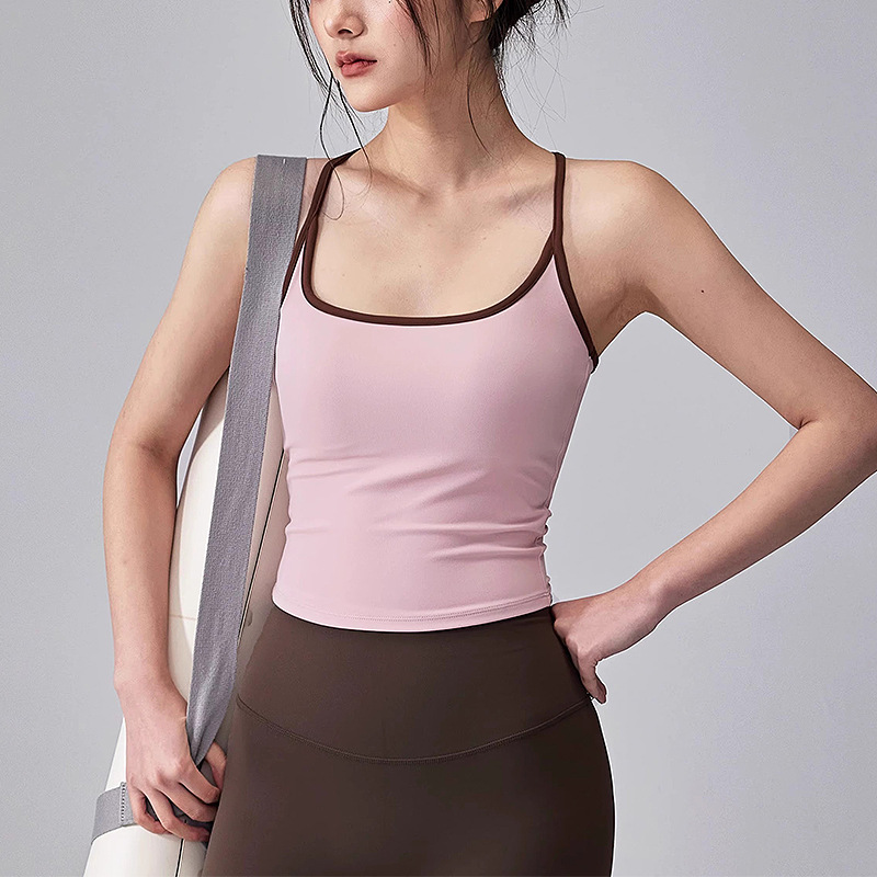 배색 I자형 등 스포츠 브라, 피부친화적인 누드 필라테스 피트니스 브라, 얇은 멜빵, 통기성 요가조끼