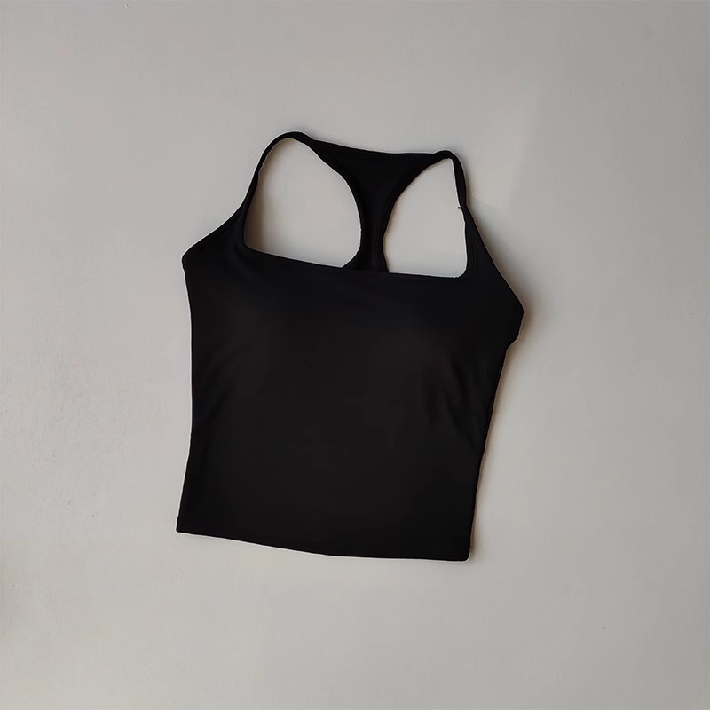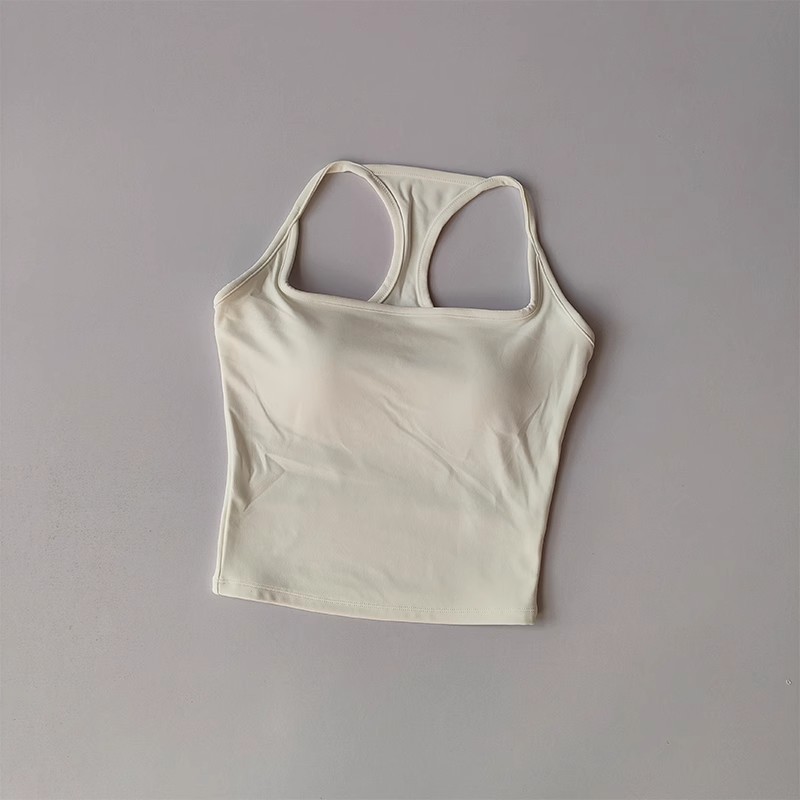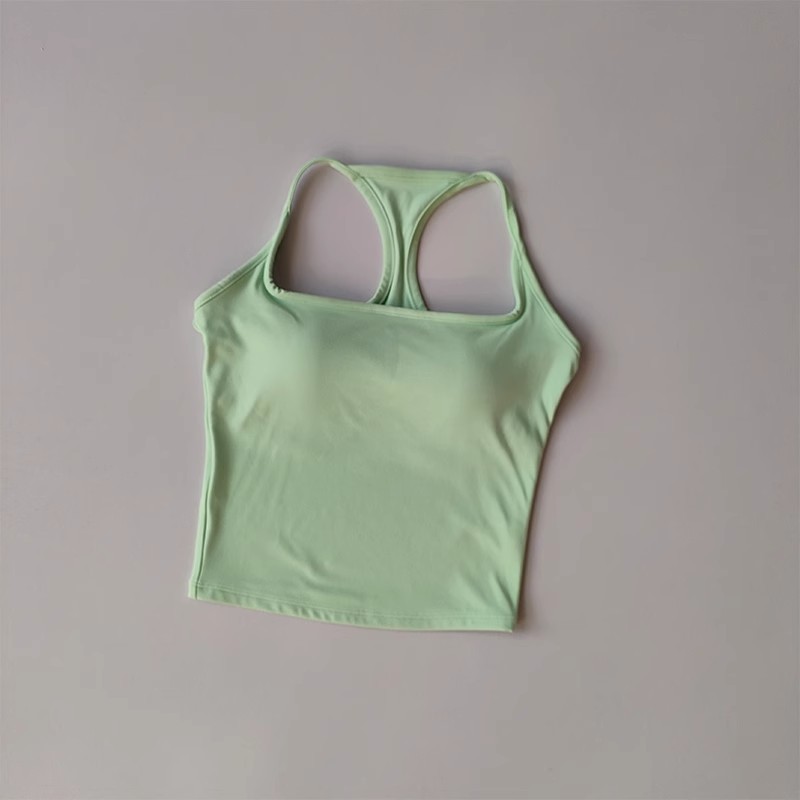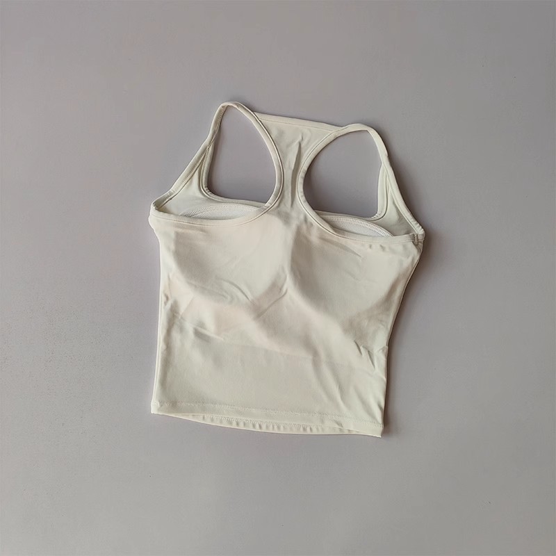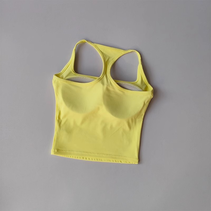 배색 I자형 등 스포츠 브라, 피부친화적인 누드 필라테스 피트니스 브라, 얇은 멜빵, 통기성 요가조끼