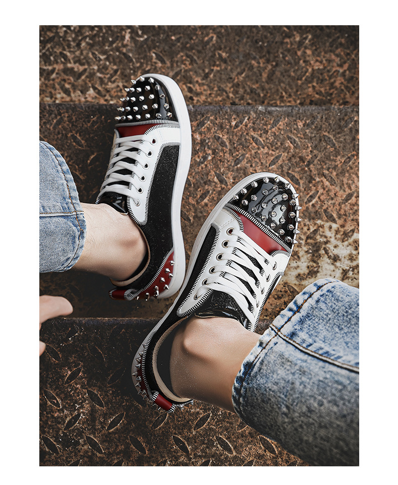 새로운 유행 신발 2025 유럽과 미국의 패션 실버 로우 컷 스파이크 캐주얼 운동화 레이스 업 펌프스 리벳 남성 신발스토어 가기