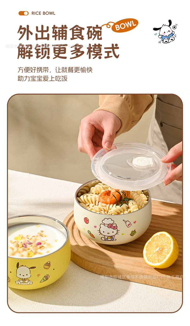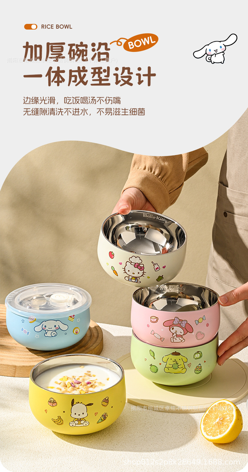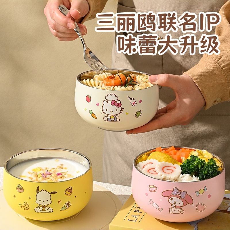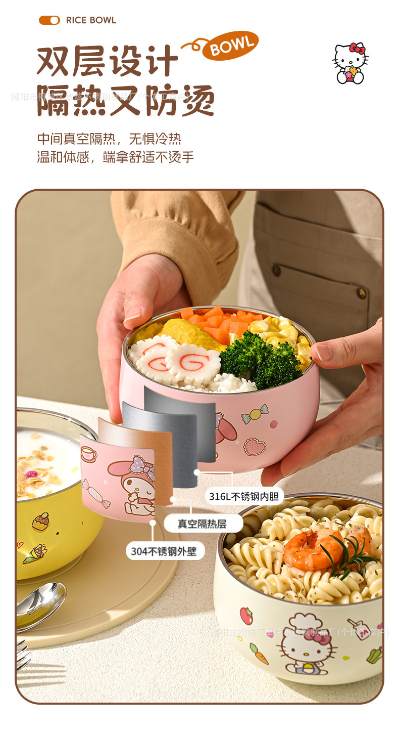 정품 Sanrio 의료용 등급 316 스테인레스 스틸 그릇 단열 귀여운 어린이 밥 그릇 이중층 단열 가정용 식기스토어 가기