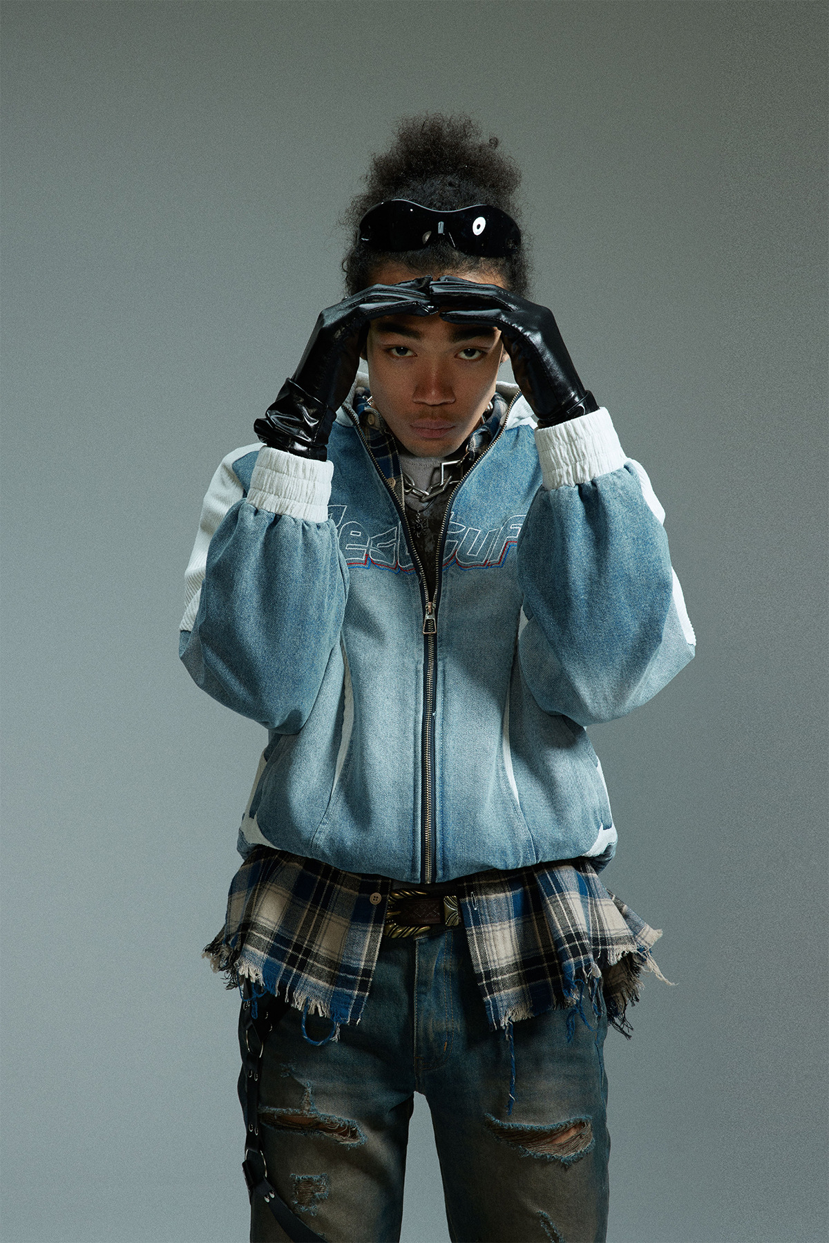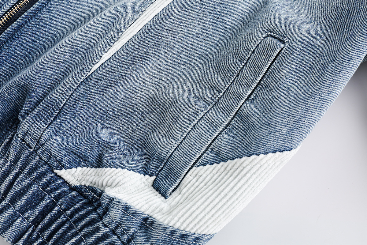 일본 하이 스트리트 코듀로이 대비 컬러 스플라이싱 스탠드 칼라 데님 재킷 남성 봄, 가을 스트리트 트렌드 다용도 오토바이 재킷스토어 가기
