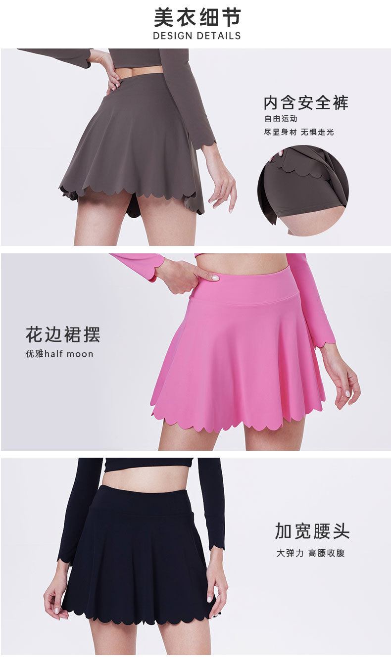 유럽과 미국의 크로스보더 누드 테니스 스커트, 슬림핏, 노출 방지 레이스 스커트, 피트니스 조깅 사이클링 요가 스커트