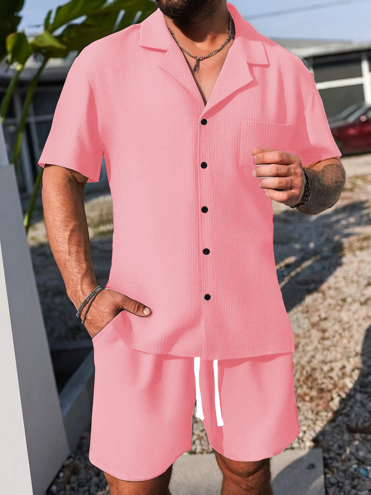 2025 멀티 컬러 다목적 새로운 남성 여름 코튼 린넨 버블 솔리드 컬러 반팔 셔츠 정장 루즈 캐주얼 버튼