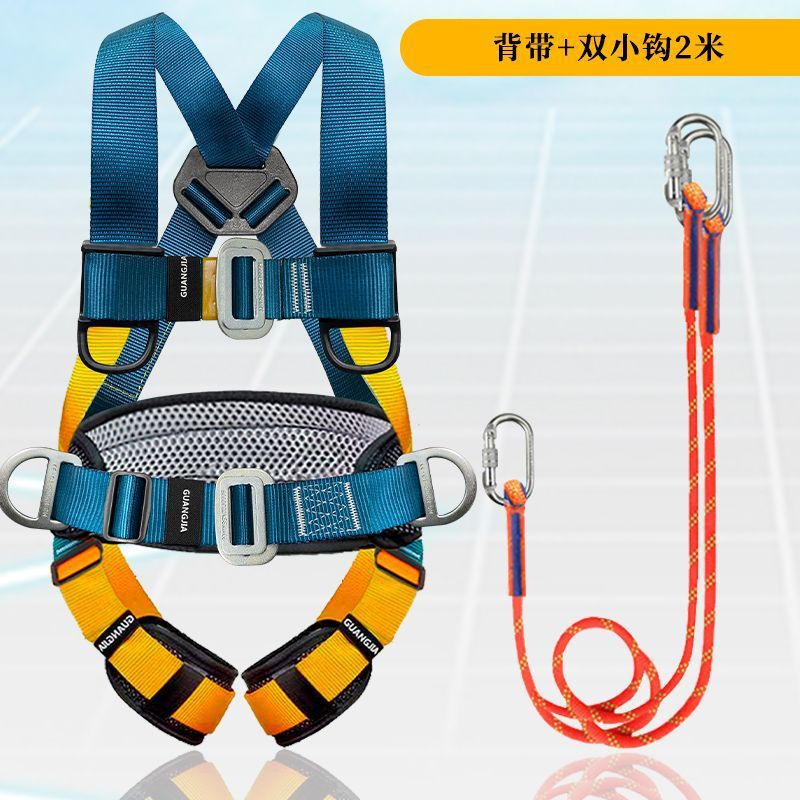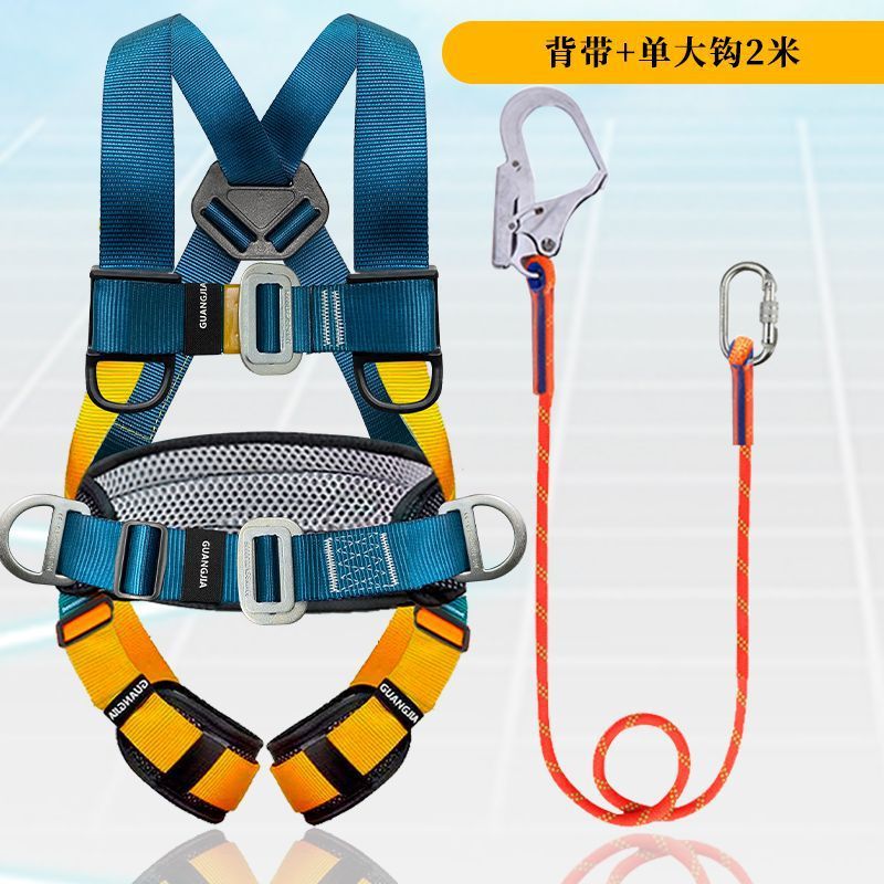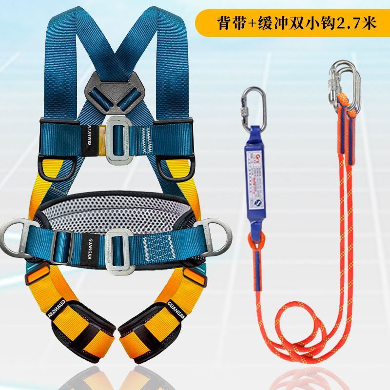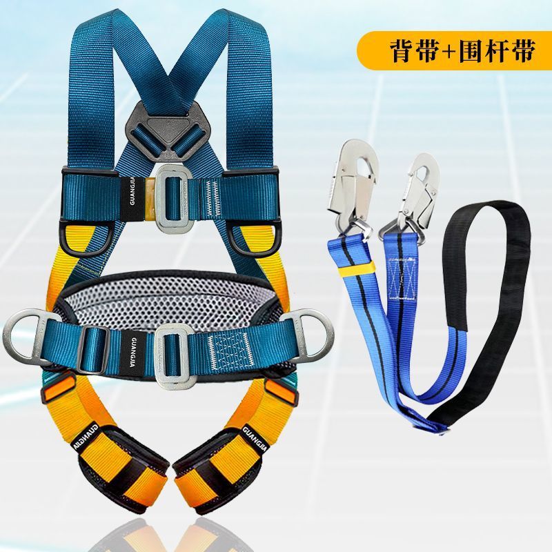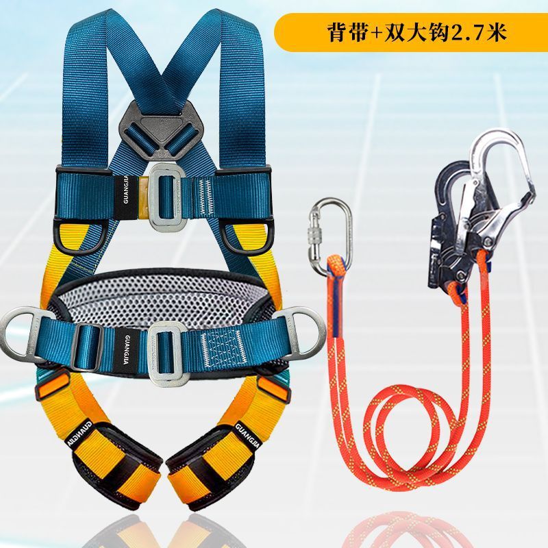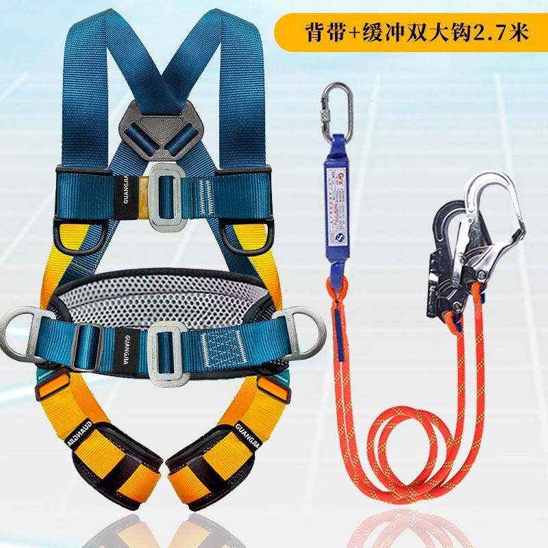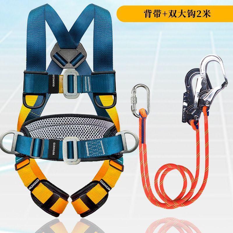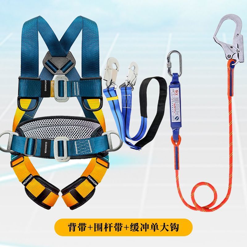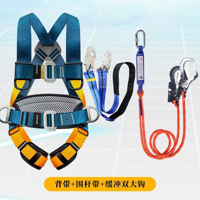 고공 작업용 국가 표준 5점식 안전벨트, 더블 후크가 있는 전신 낙하 방지 안전 로프 풀 세트스토어 가기
