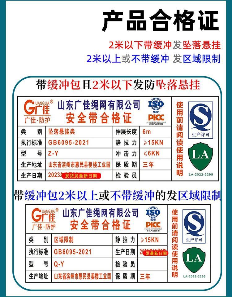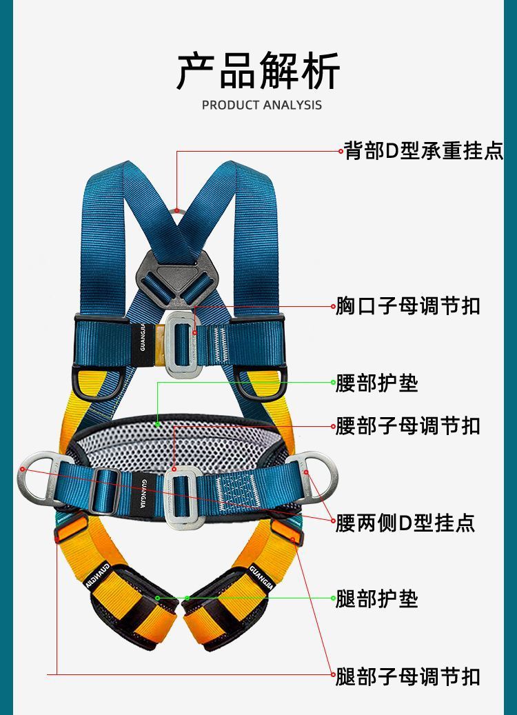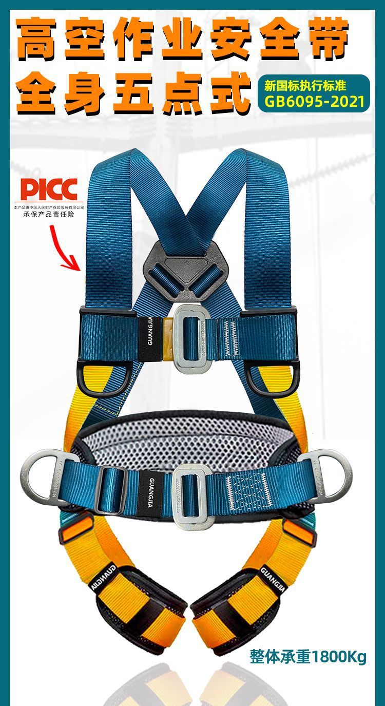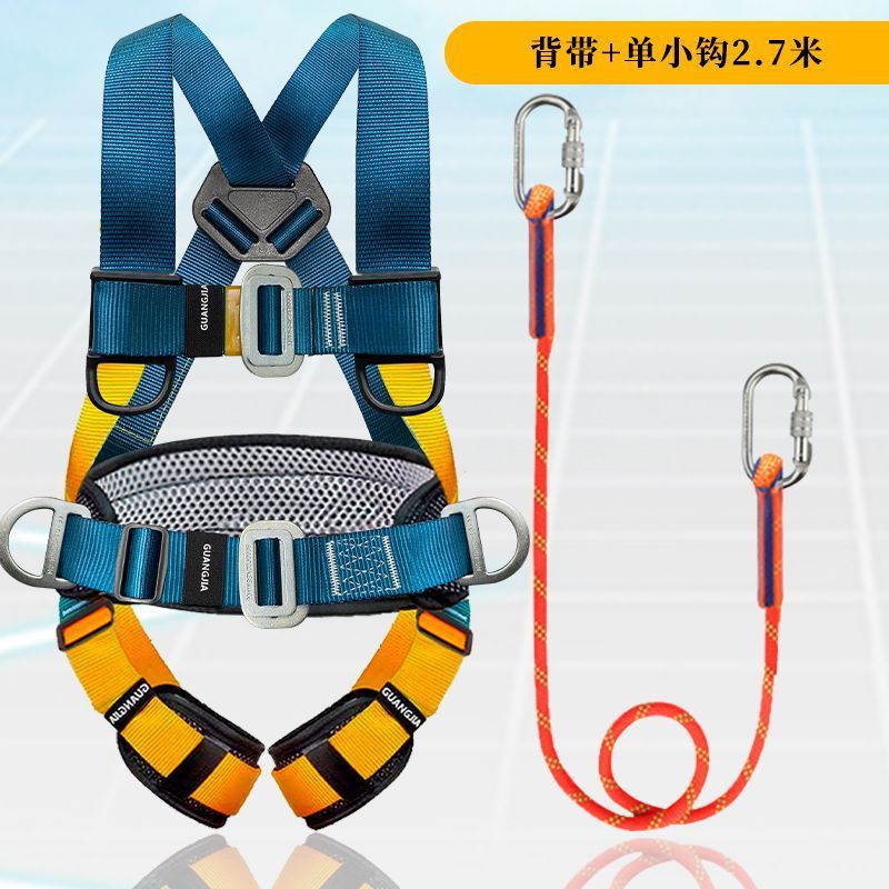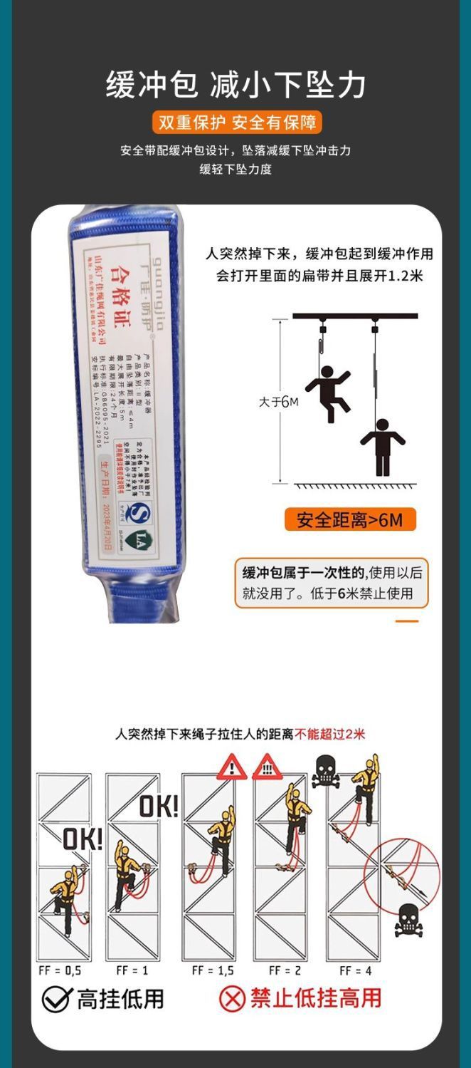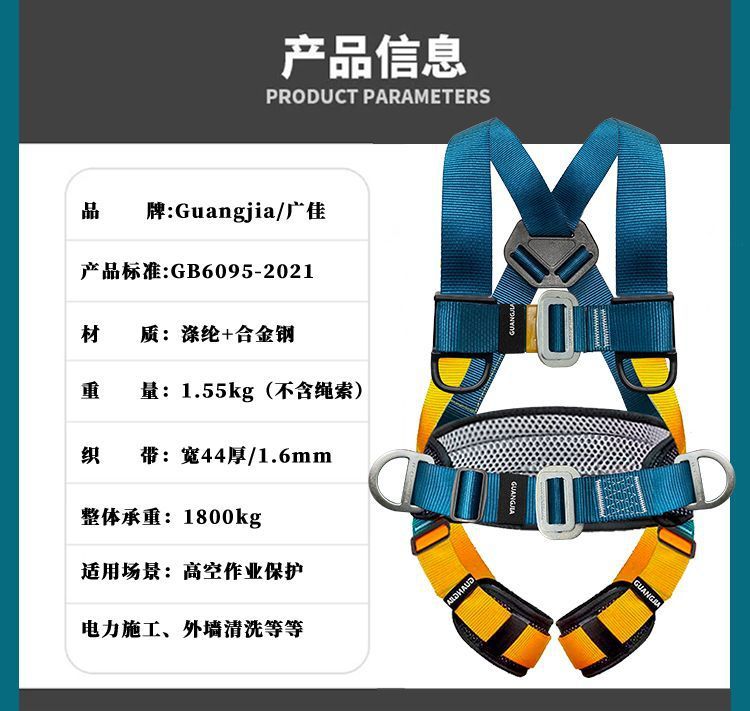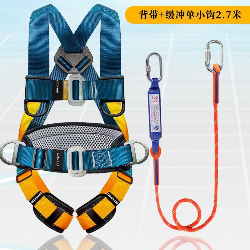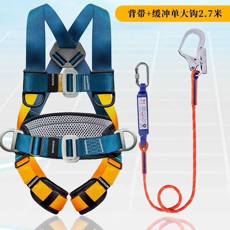 고공 작업용 국가 표준 5점식 안전벨트, 더블 후크가 있는 전신 낙하 방지 안전 로프 풀 세트스토어 가기