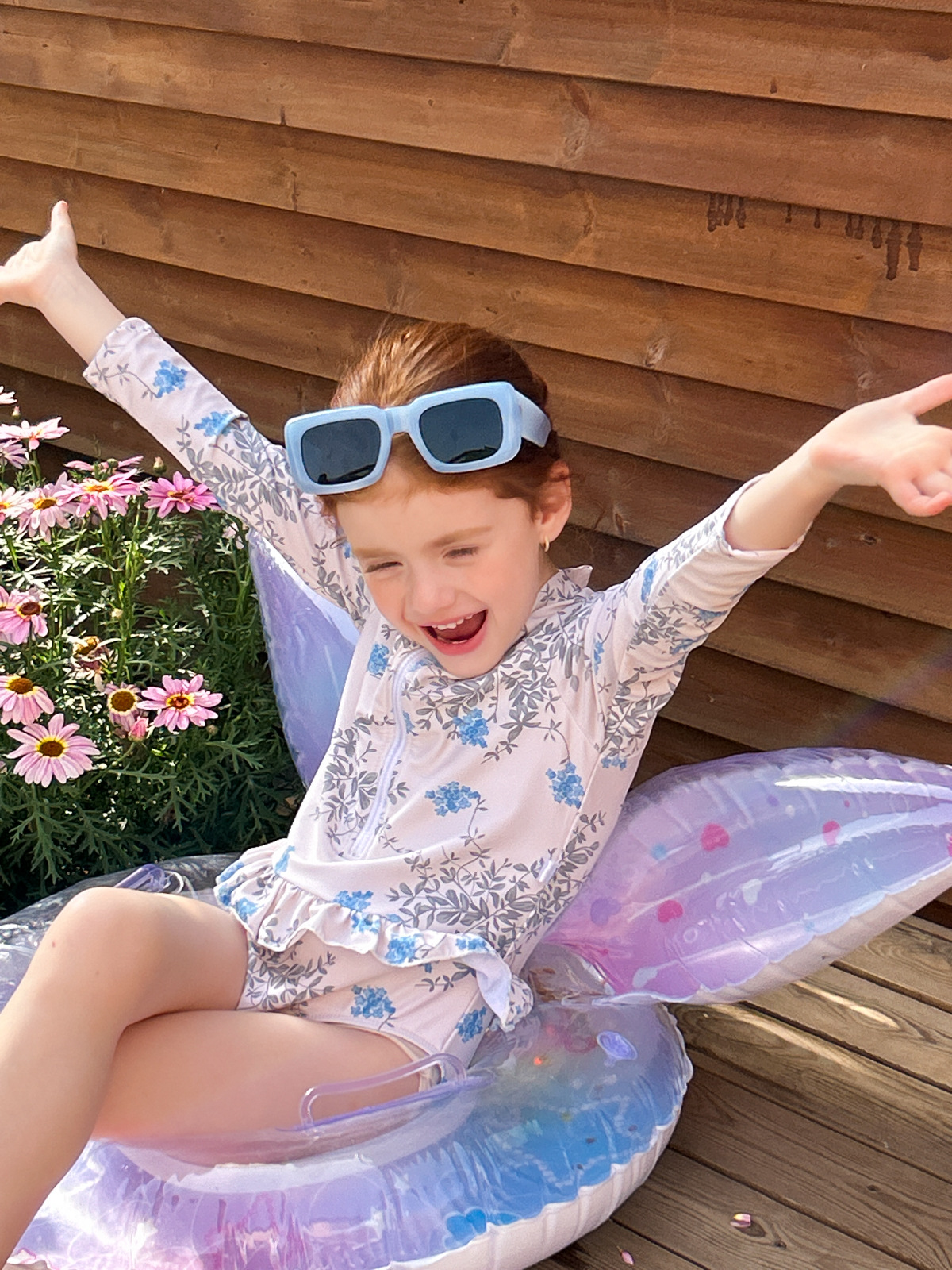어린이 스타일 프린트 수영복 2025 여름 새 여자 원피스 수영복 자외선 차단 러플 긴팔 수영복스토어 가기