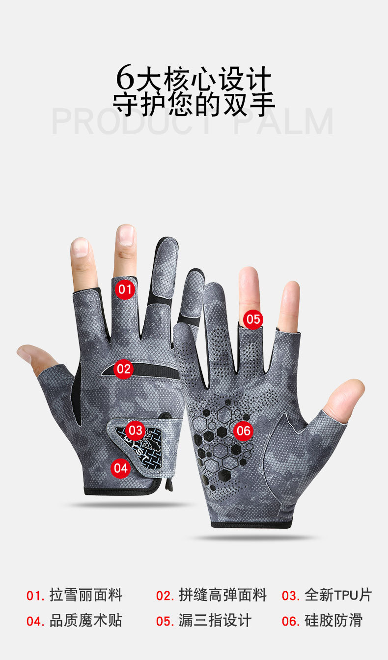 Luya 낚시 장갑 Sherry 전문 야외 낚시 3 손가락 장갑 통기성 태양 보호 내마모성 미끄럼 방지 얇은 스타일