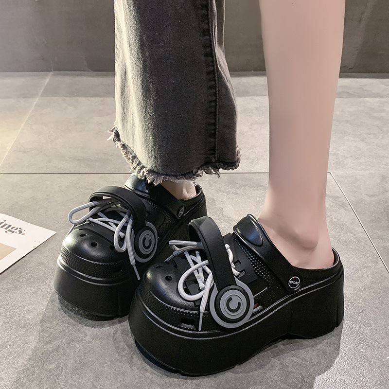 인터넷 연예인 인기 블랙 두꺼운 밑창 여성용 나막신 2025 신상 여름 아우터 프렌치 발가락 슬리퍼스토어 가기
