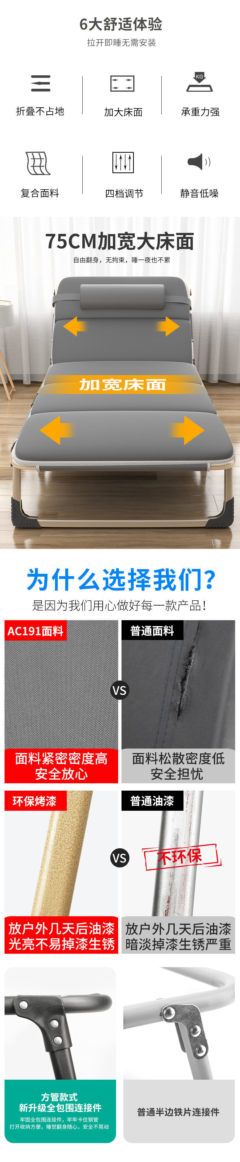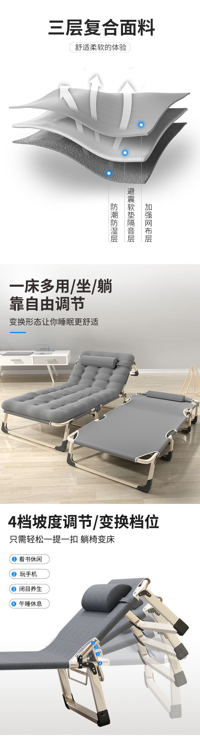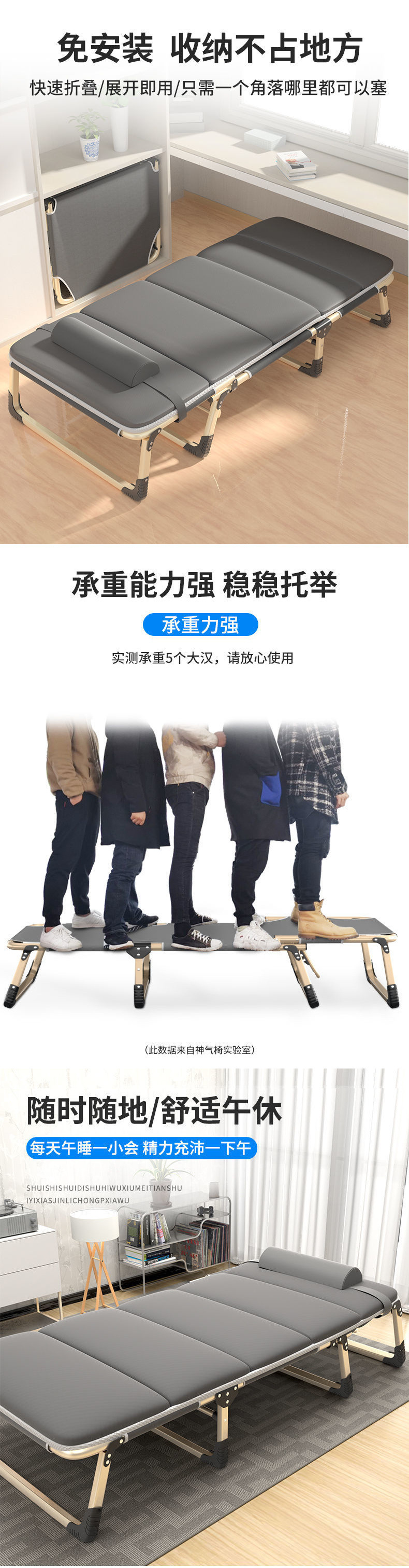 접이식 침대, 1인용 사무실 점심시간 침대, 휴대용 안락의자, 병원 동행 침대, 간이 낮잠 침대, 캠프 침대