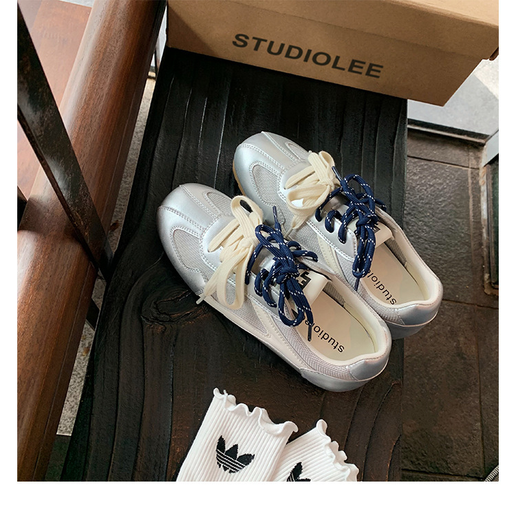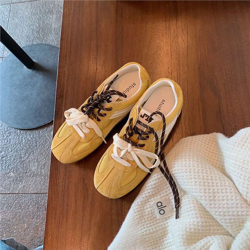 소가죽 버전 ~ Grape Mom 5cm 레트로 오리 신발끈 메쉬 다용도 도덕 훈련 신발 여성 캐주얼 운동화