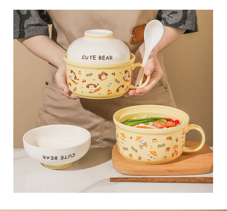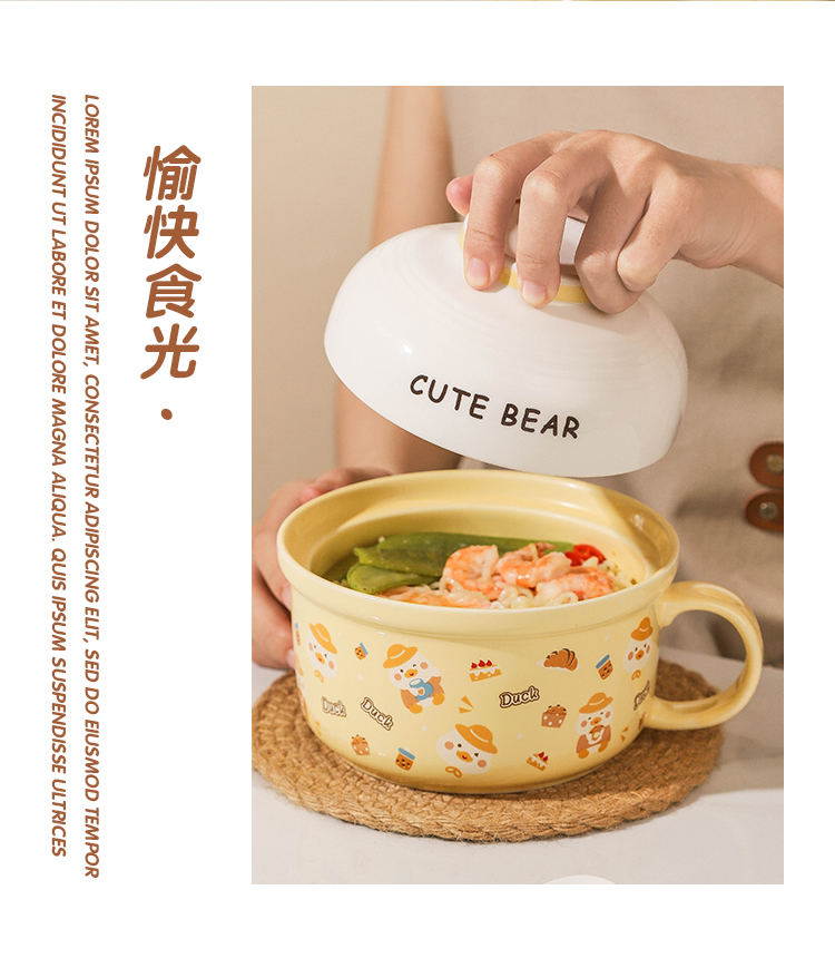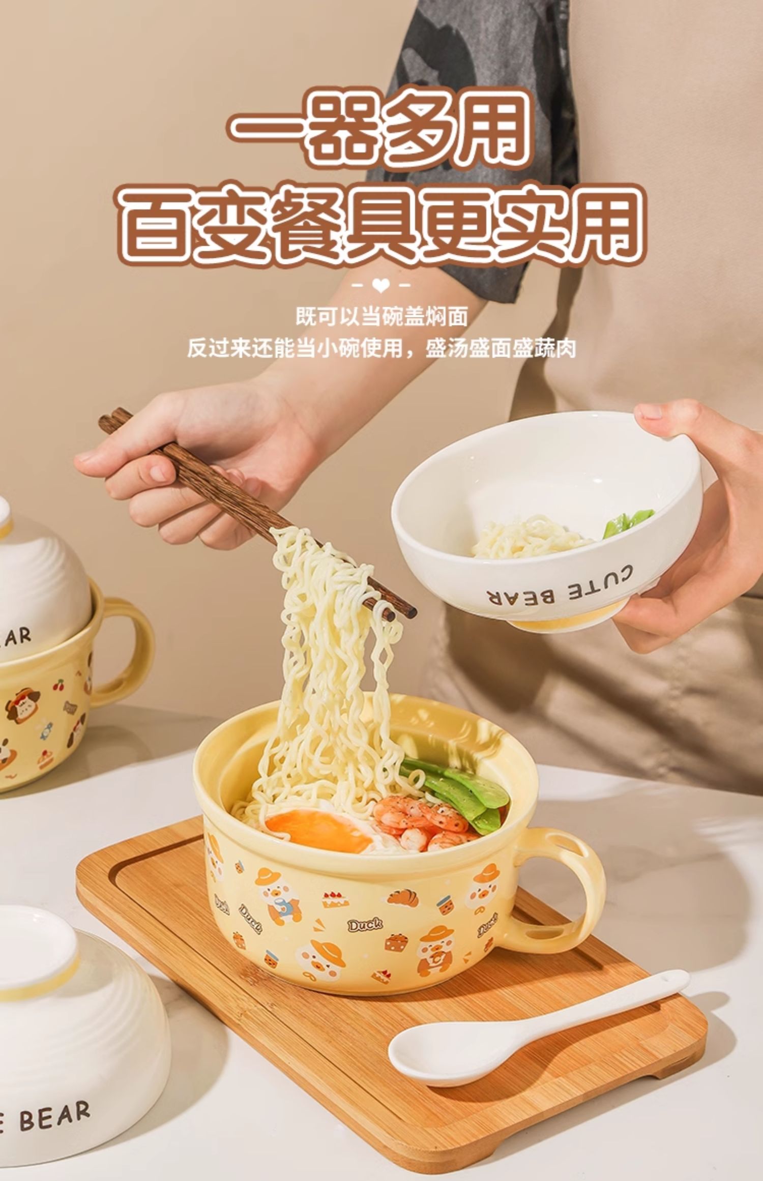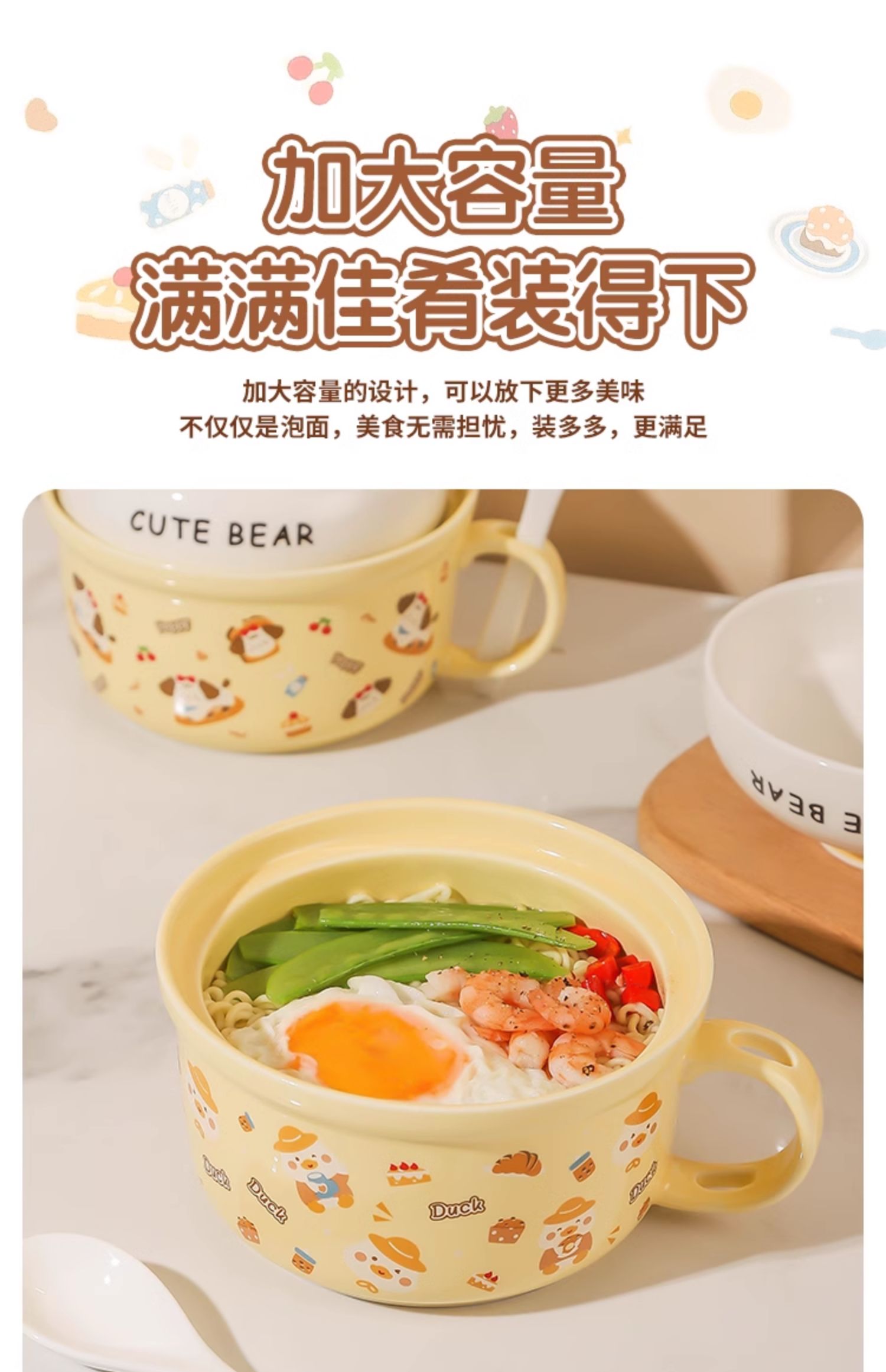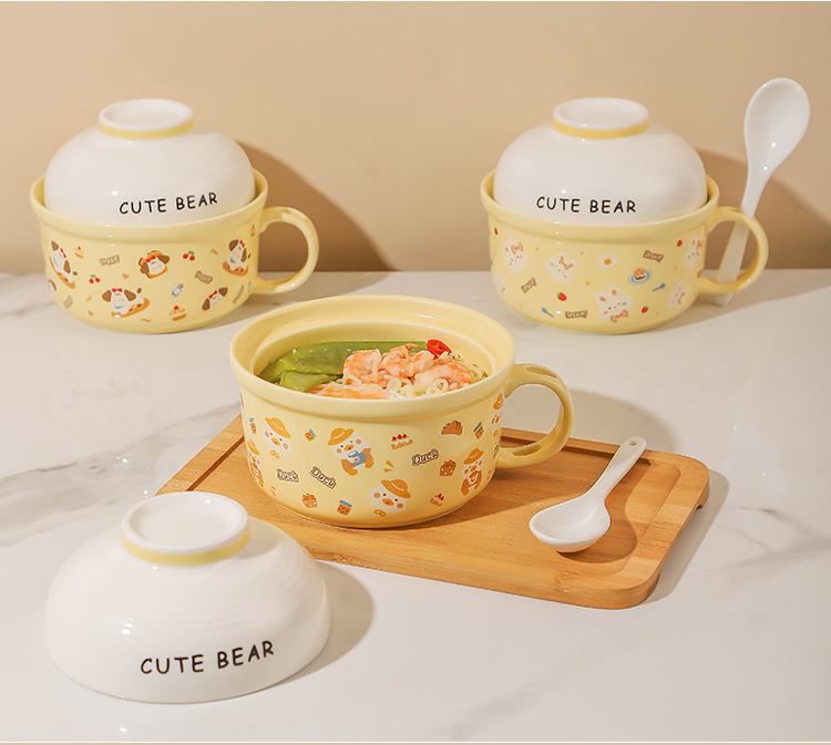 뚜껑이 있는 가정용 인스턴트 국수 그릇 2024 기숙사용 새 세라믹 인스턴트 국수 그릇 학생용 인스턴트 국수 컵 캔틴스토어 가기