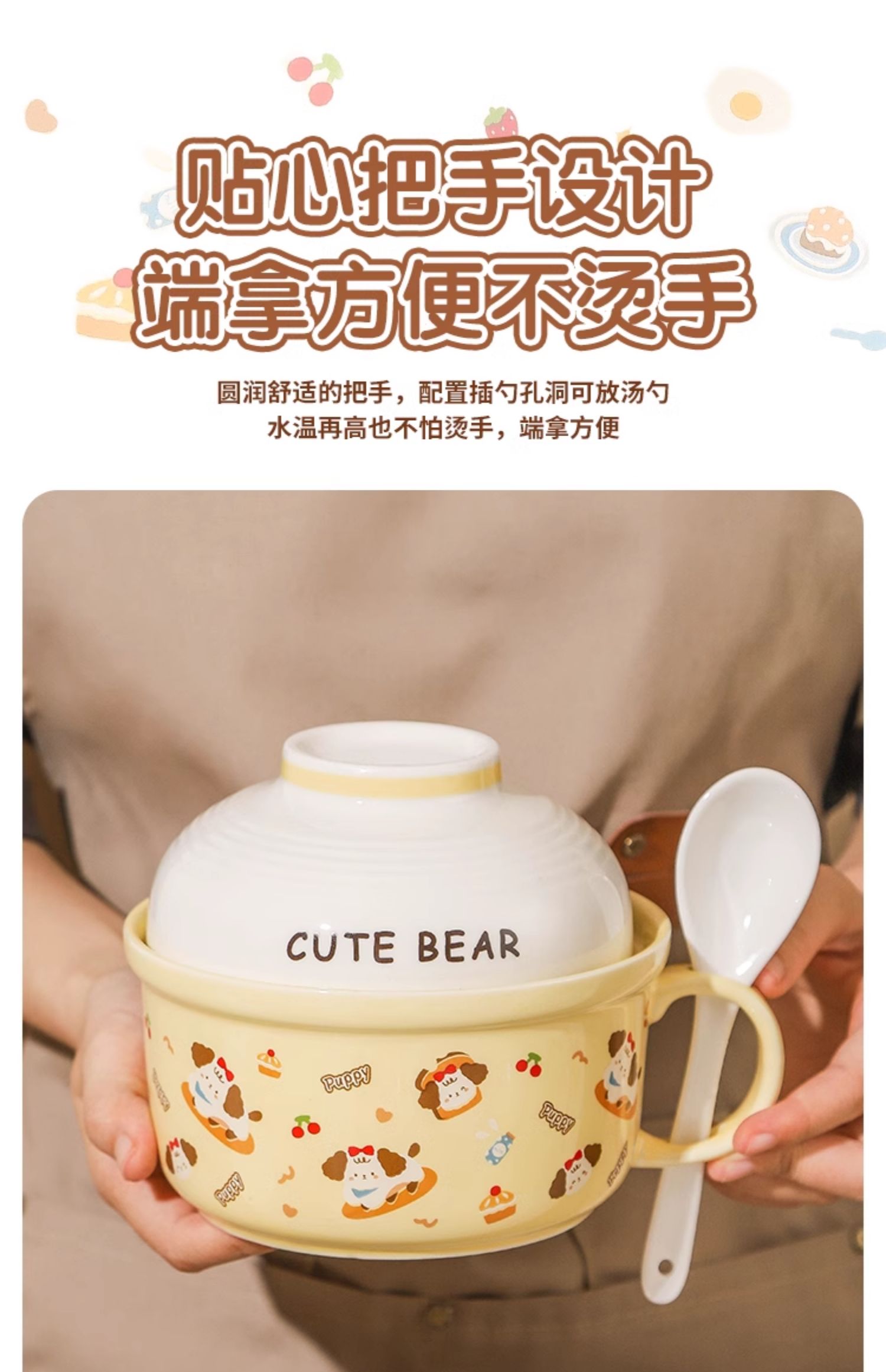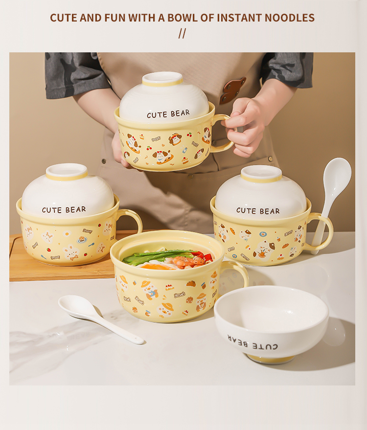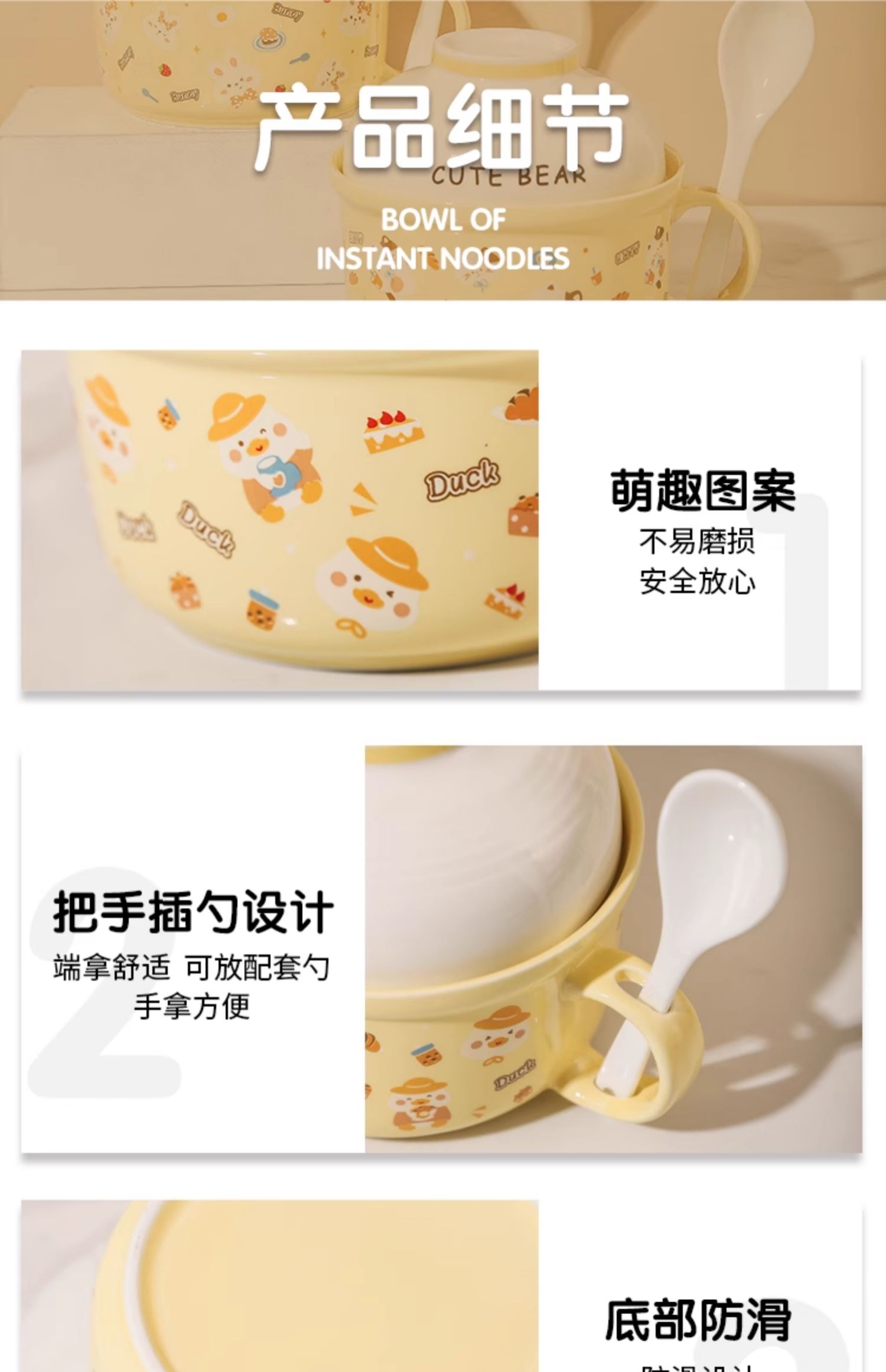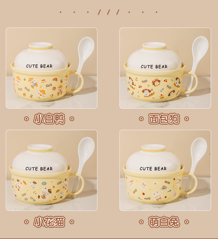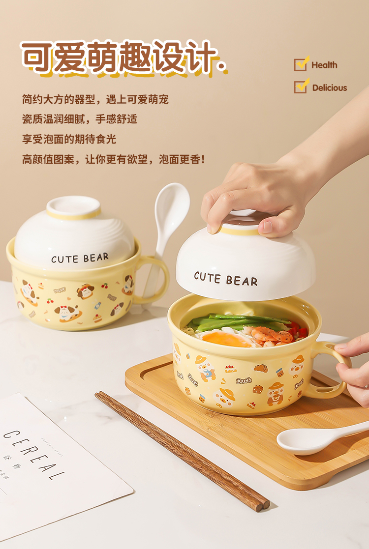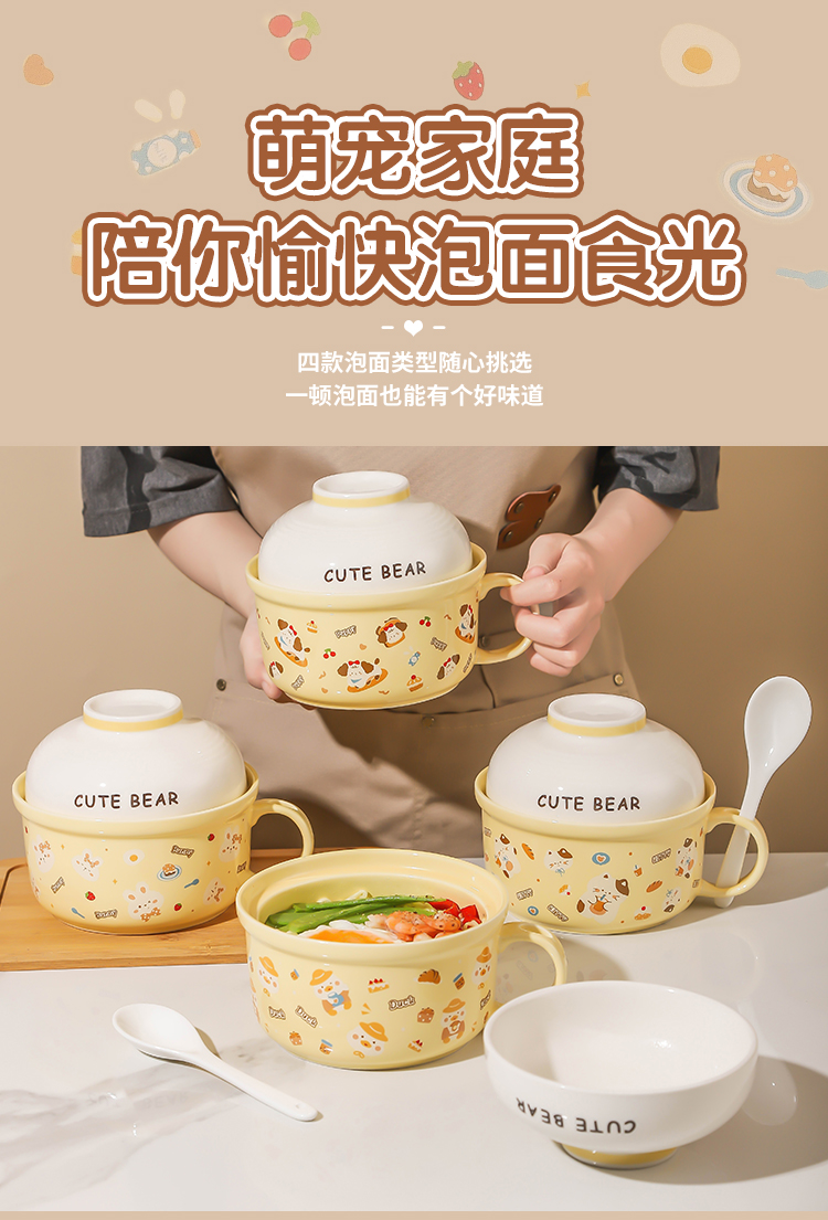뚜껑이 있는 가정용 인스턴트 국수 그릇 2024 기숙사용 새 세라믹 인스턴트 국수 그릇 학생용 인스턴트 국수 컵 캔틴스토어 가기
