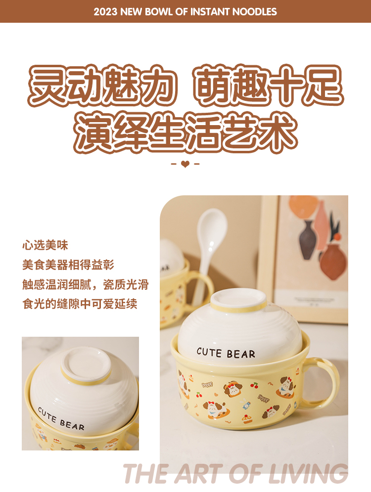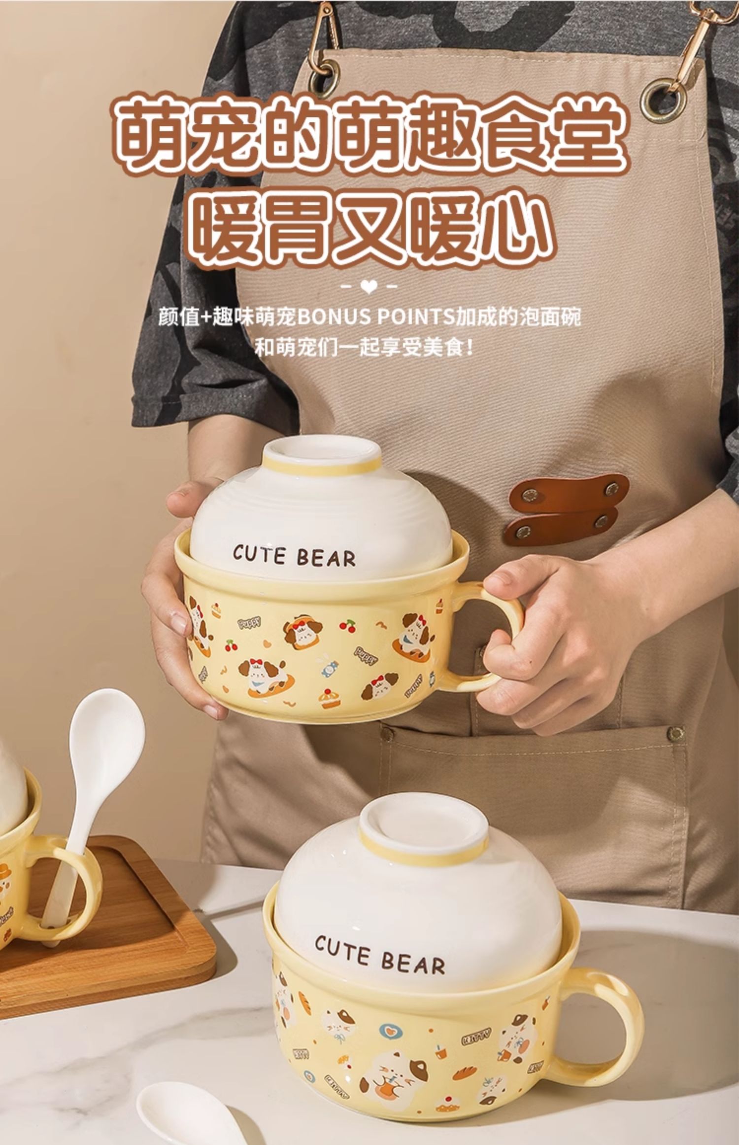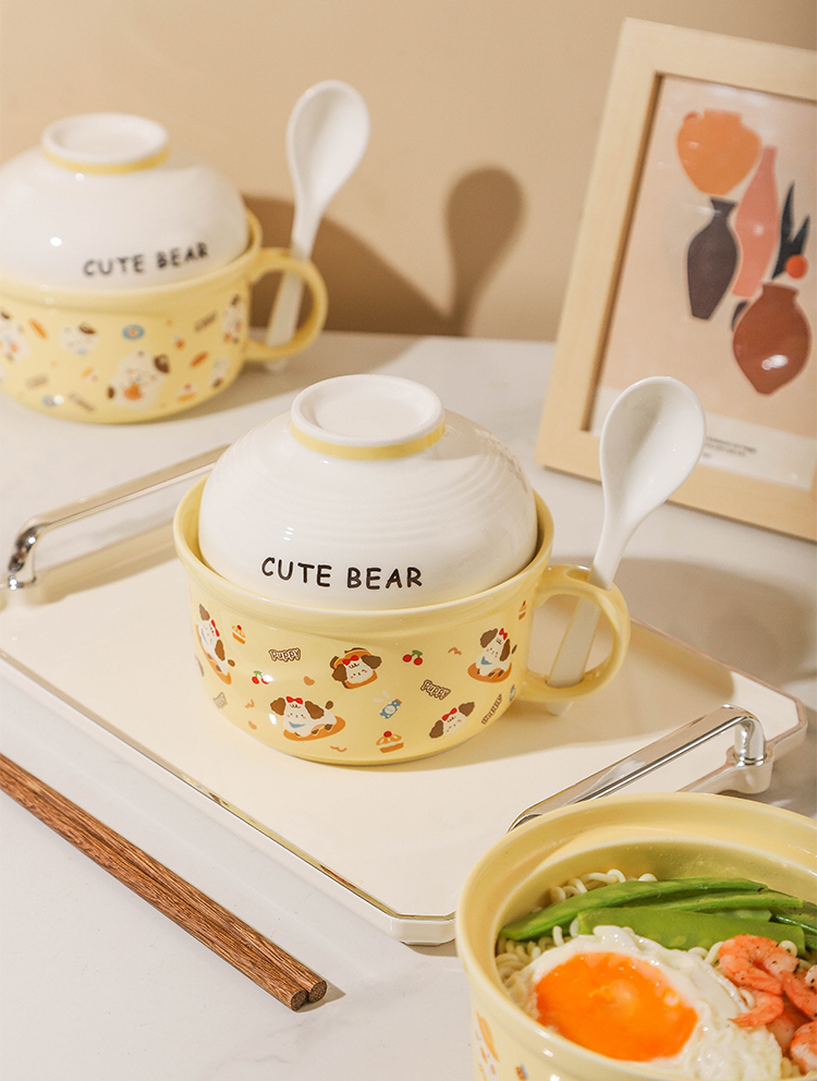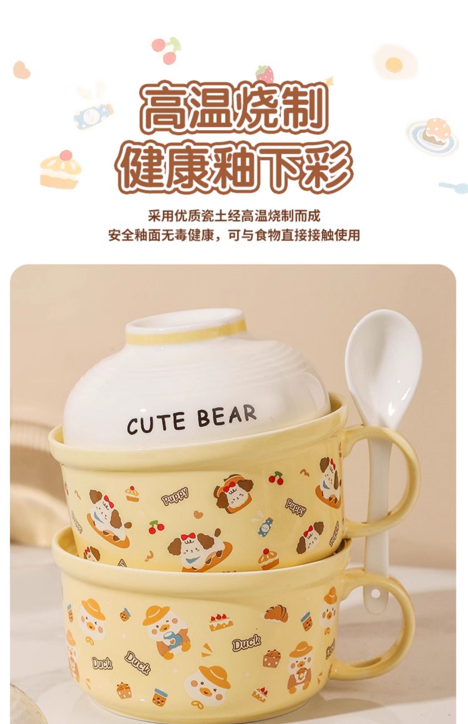 뚜껑이 있는 가정용 인스턴트 국수 그릇 2024 기숙사용 새 세라믹 인스턴트 국수 그릇 학생용 인스턴트 국수 컵 캔틴스토어 가기