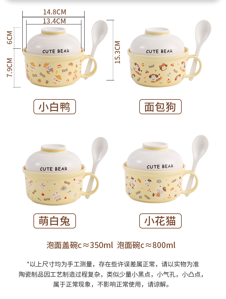 뚜껑이 있는 가정용 인스턴트 국수 그릇 2024 기숙사용 새 세라믹 인스턴트 국수 그릇 학생용 인스턴트 국수 컵 캔틴