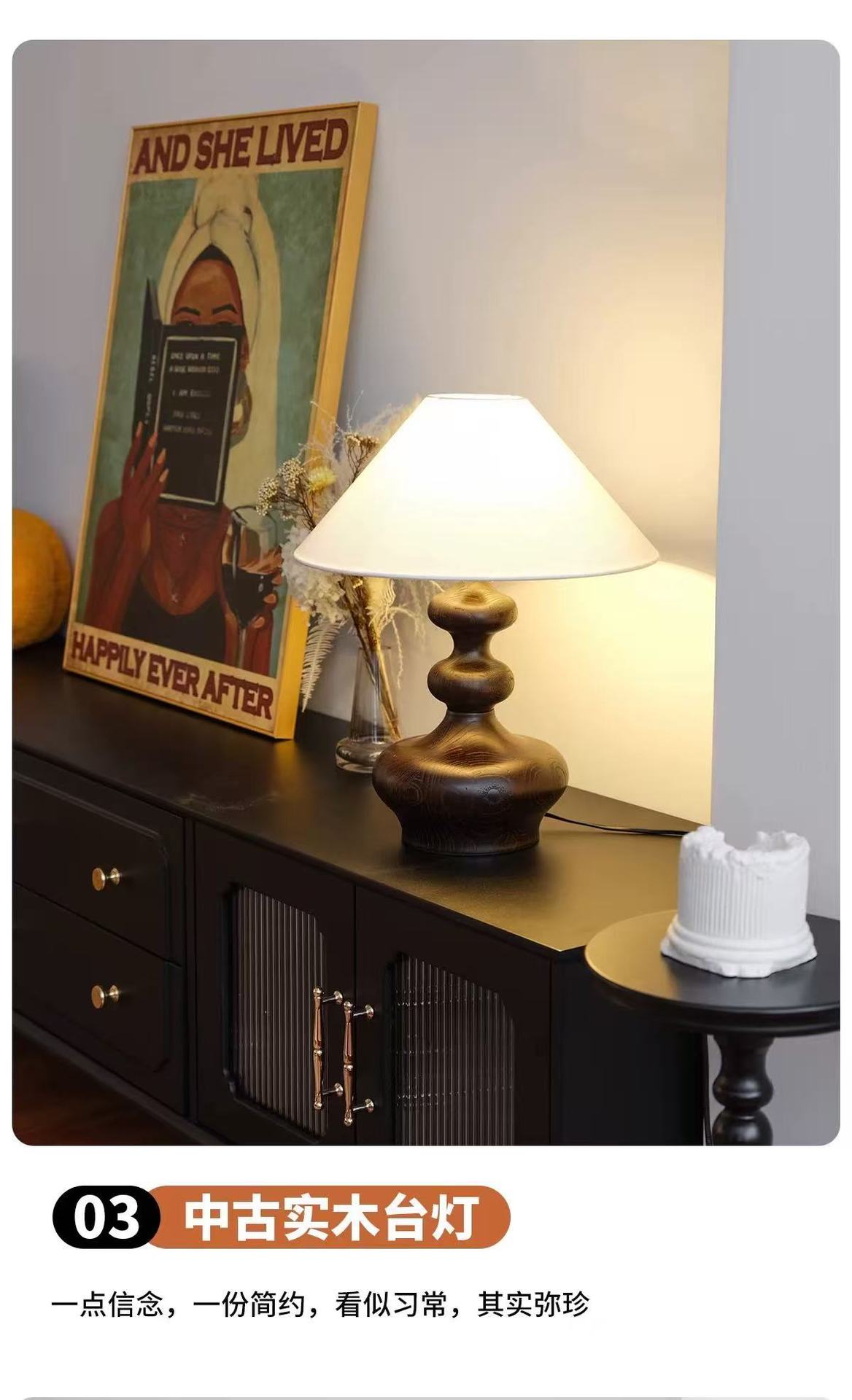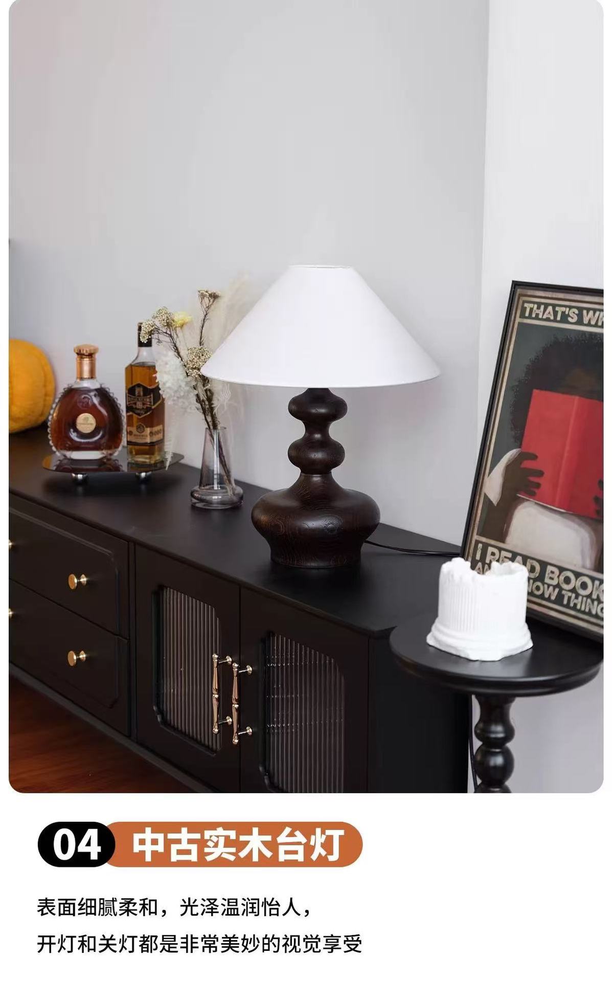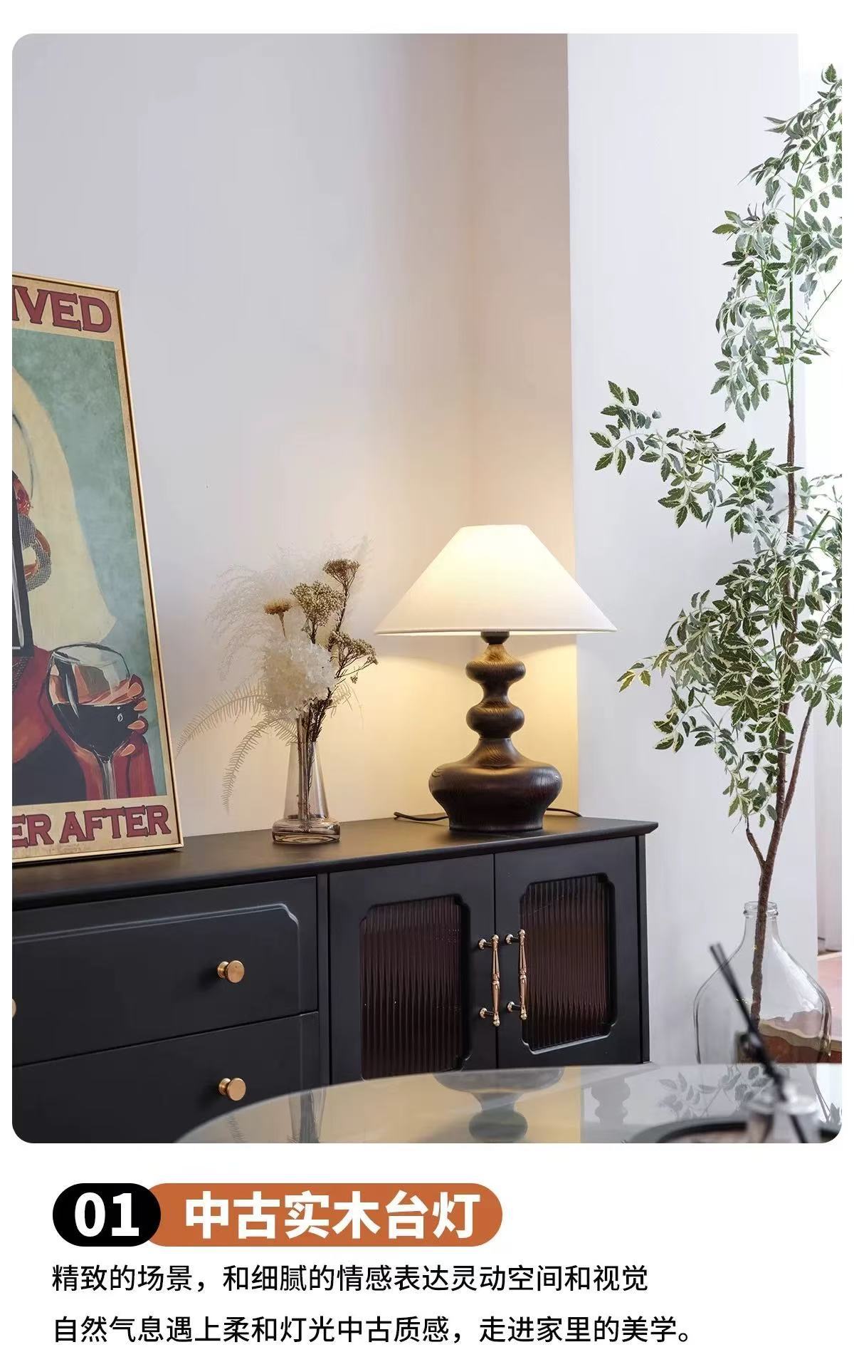 중고 테이블 램프, 침실, 서재, 미국식 레트로 와비사비 스타일, 디자이너 고급 분위기, 원목 침대 옆 램프, 라이트 럭셔리