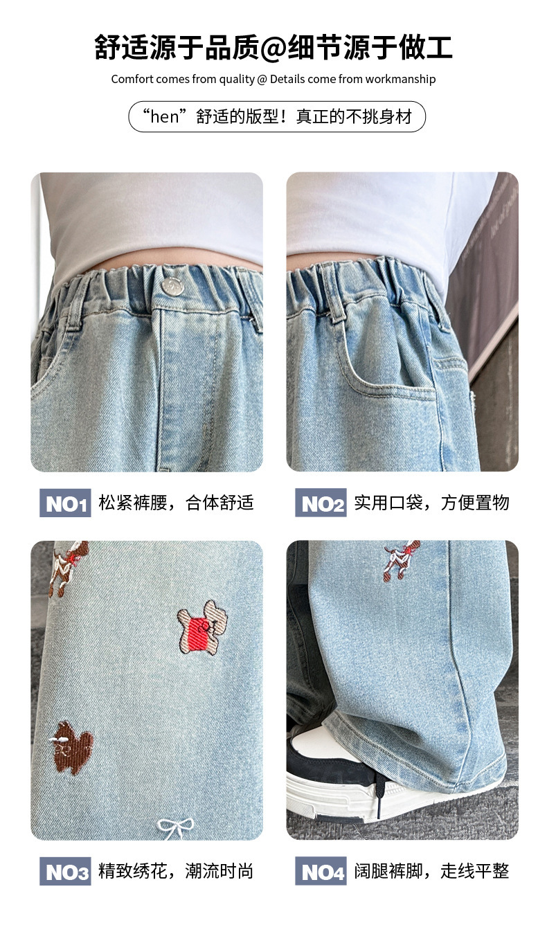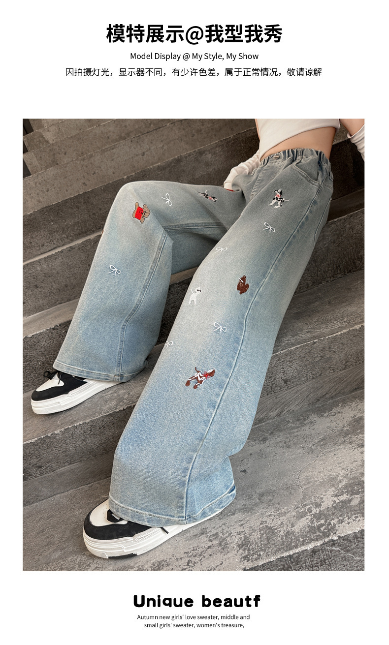 아동 및 여아 청바지 2025년 봄 새로운 스타일 중대형 아동 스타일 여아 캐주얼 자수 스트레이트 팬츠스토어 가기