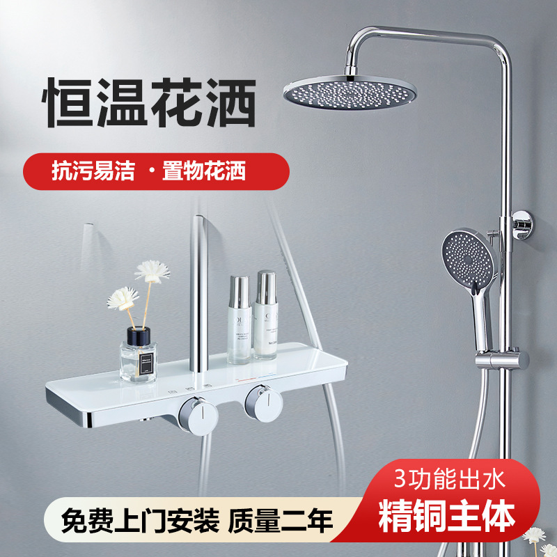 전체 구리 샤워 피아노 키 샤워 가정용 일정한 온도 부스터 노즐 욕실 레인 샤워 세트스토어 가기