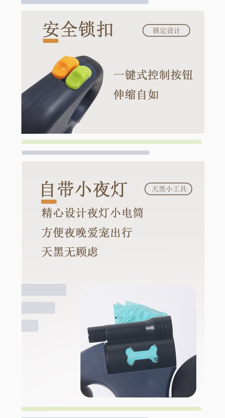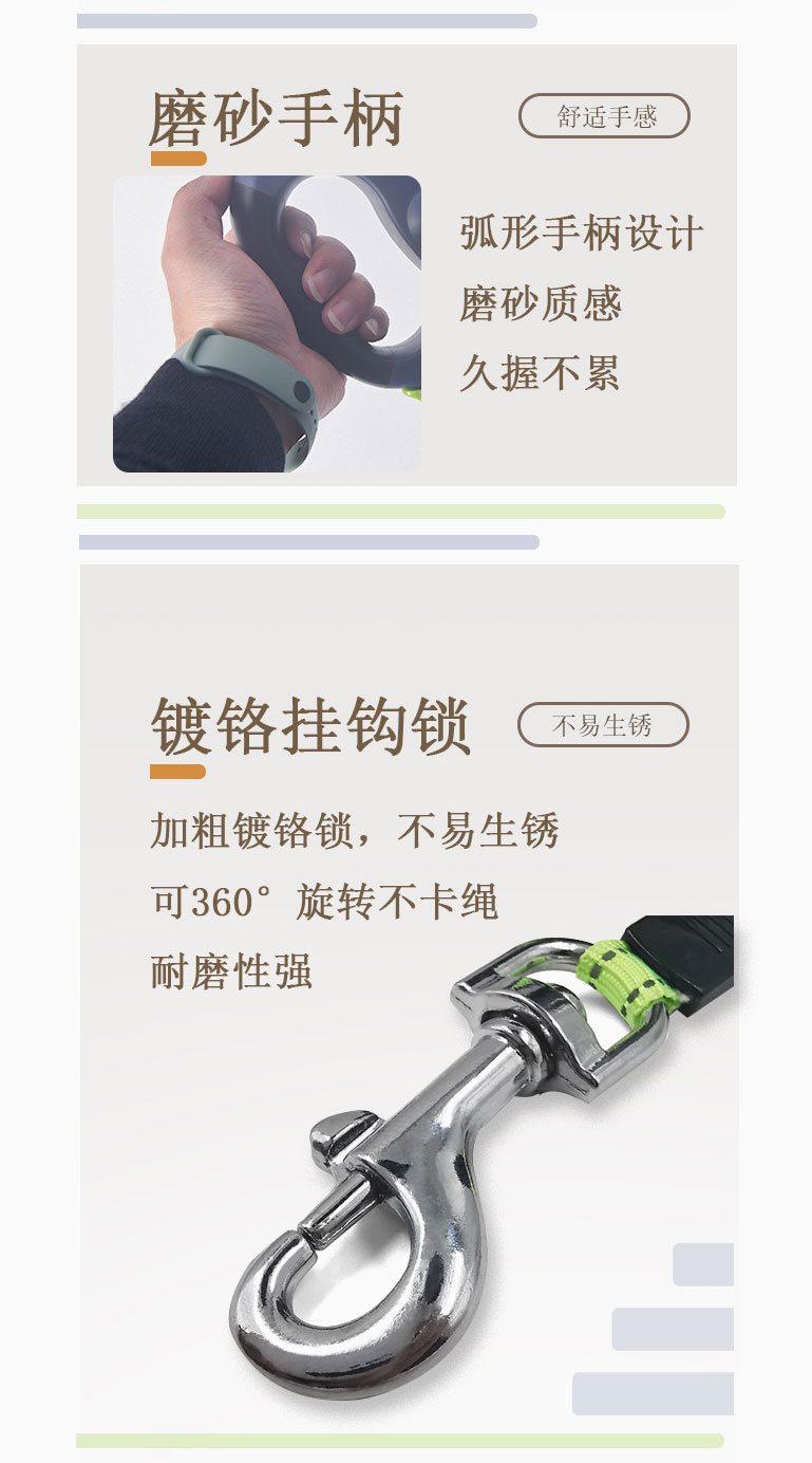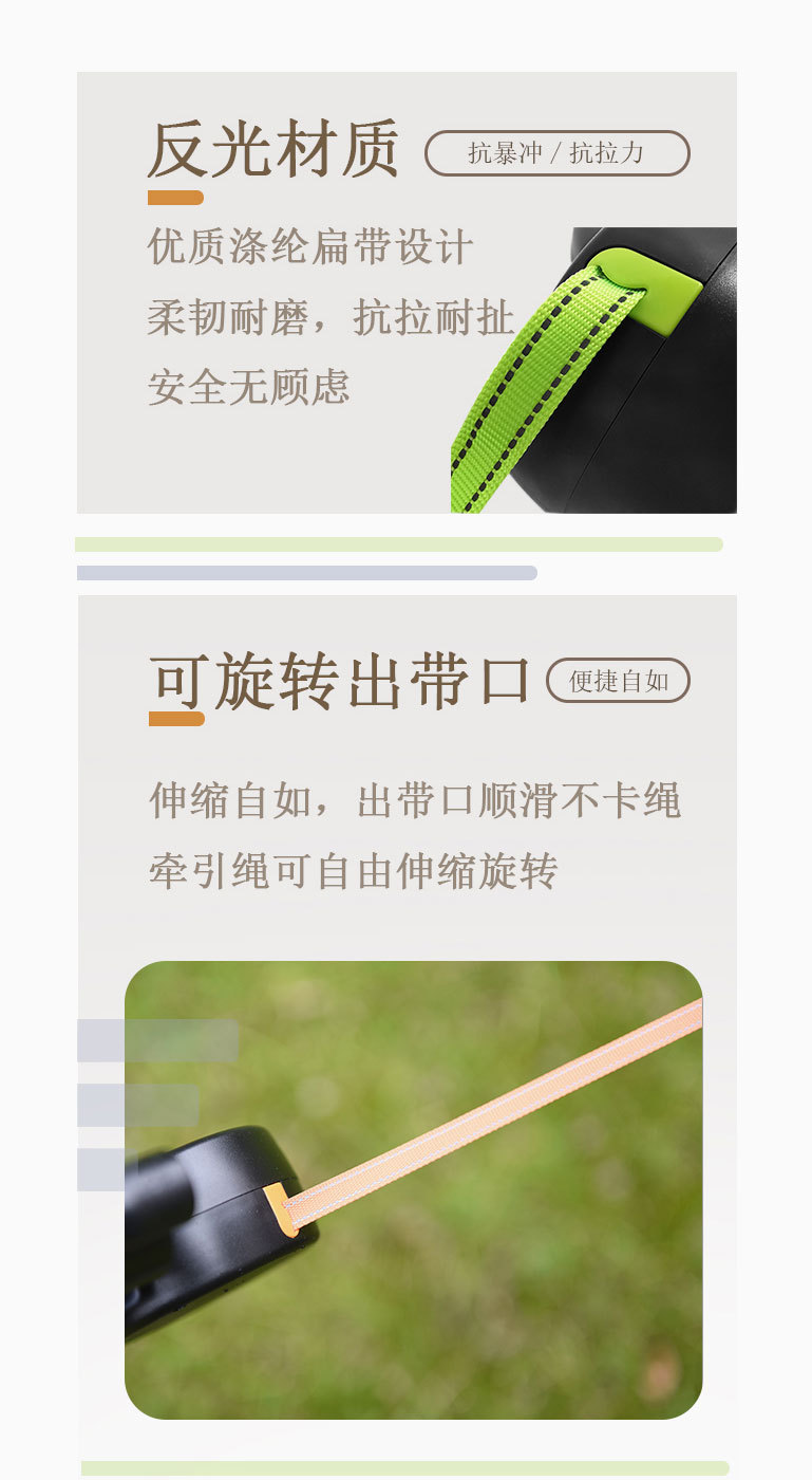 通常自动牵引绳是不能一次性大力拉到底的哦!在使用过程中,萌主切记一定要锁定后,再让狗狗自由活动,以免狗狗忽然向前狂奔,造成暴冲过头导致机芯损坏,几乎所有的自动牵引绳都有这个弱点,介意者建议使用常规款牵引绳,感谢您的理解和配合。