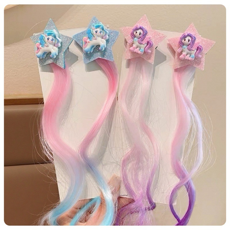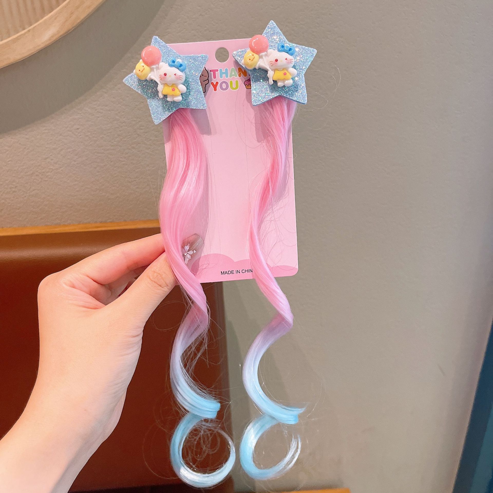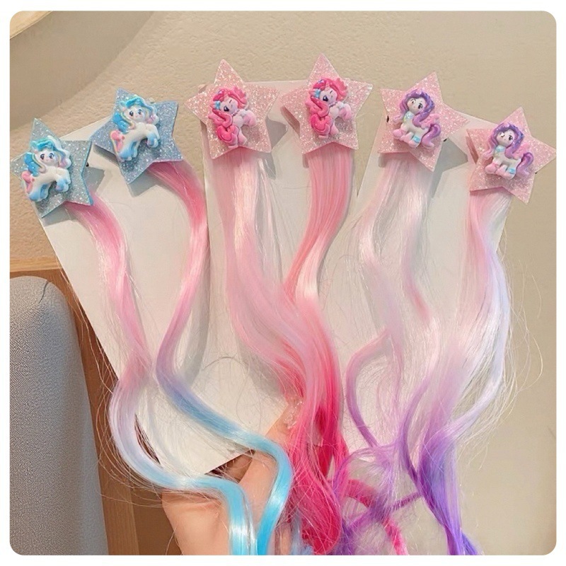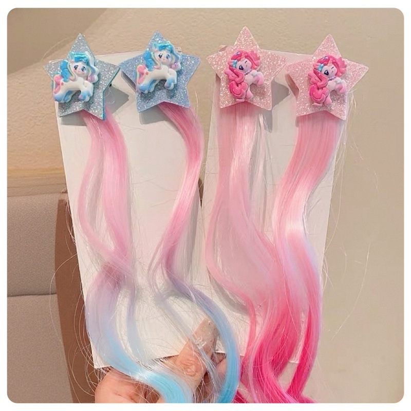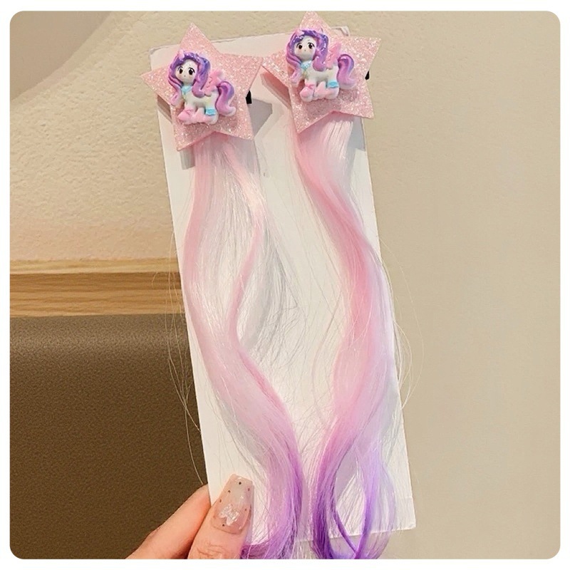 • 0609-1#퍼플 핑크 스타 포니 가발 1쌍