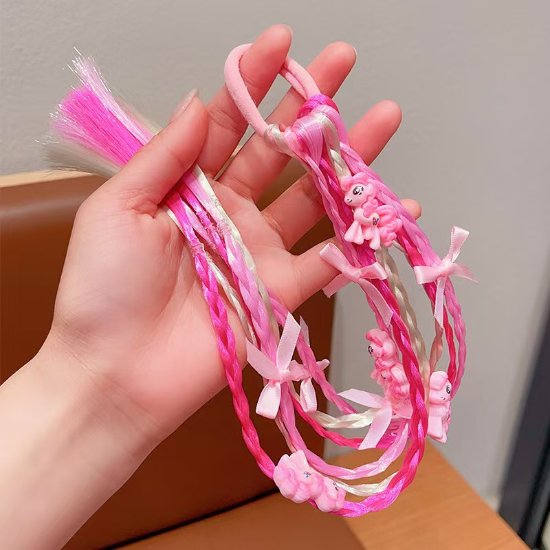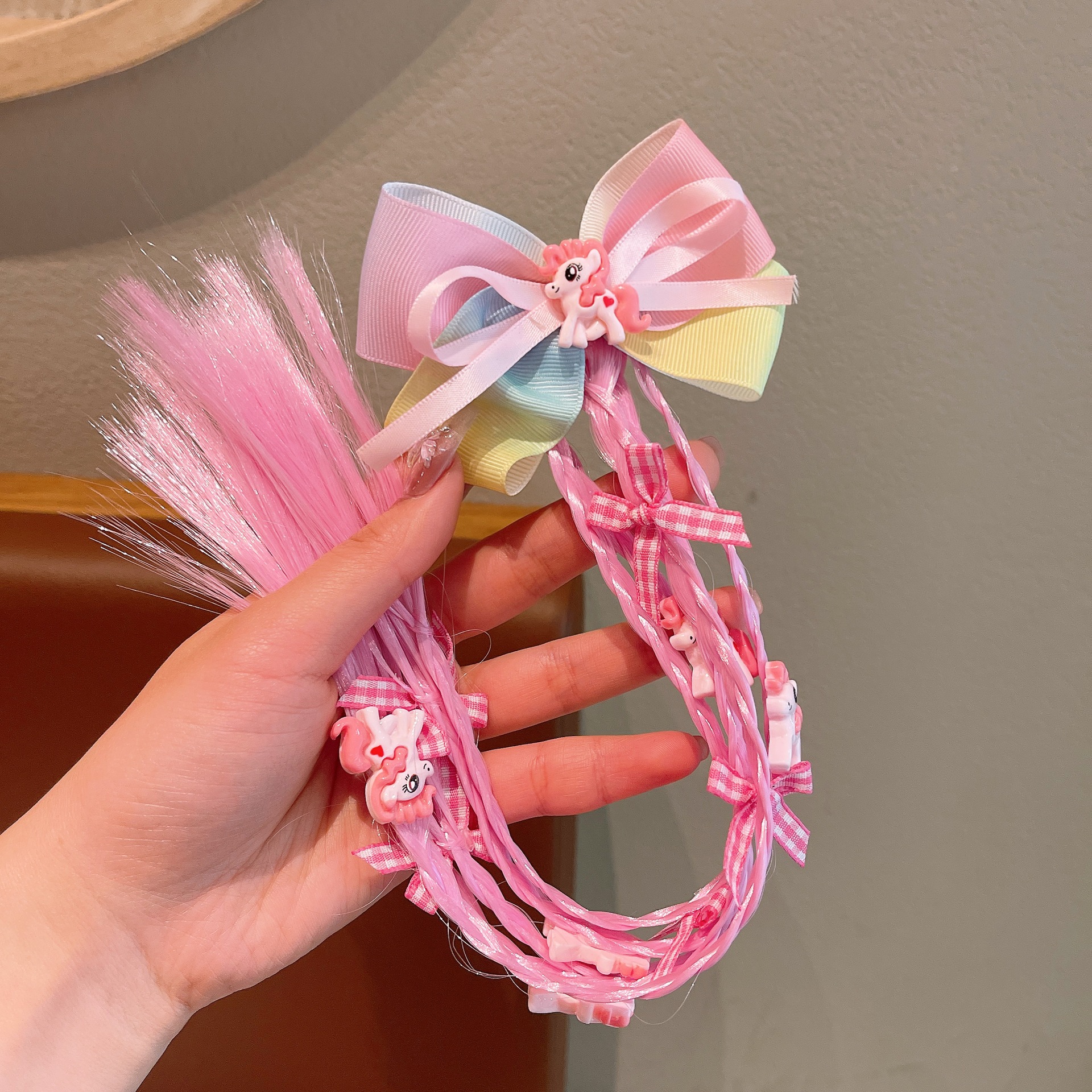 • 0612-2#핑크 리본 포니 가발 브레이드