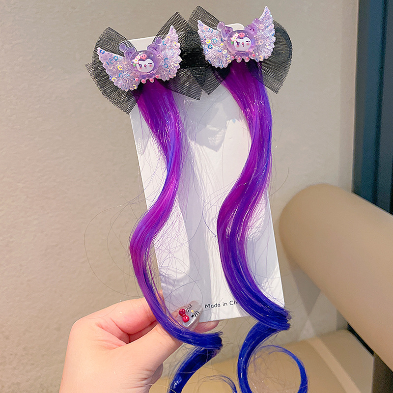 • 0612-3#검정색과 보라색 나비 포니 가발 브레이드