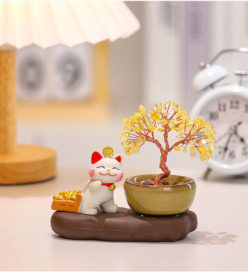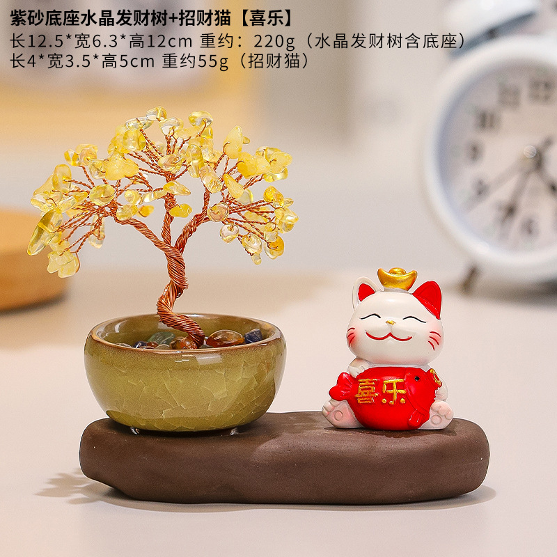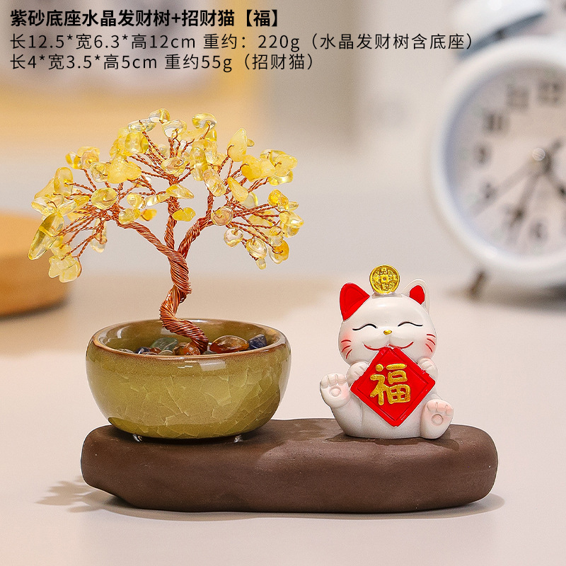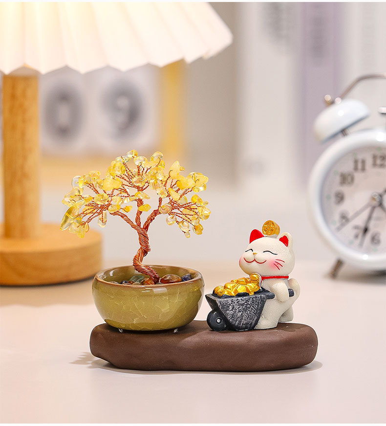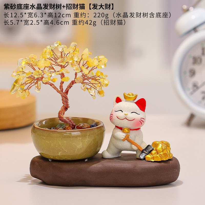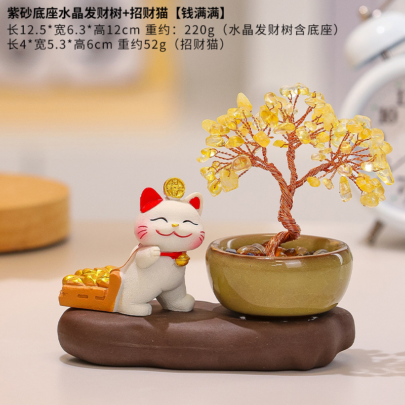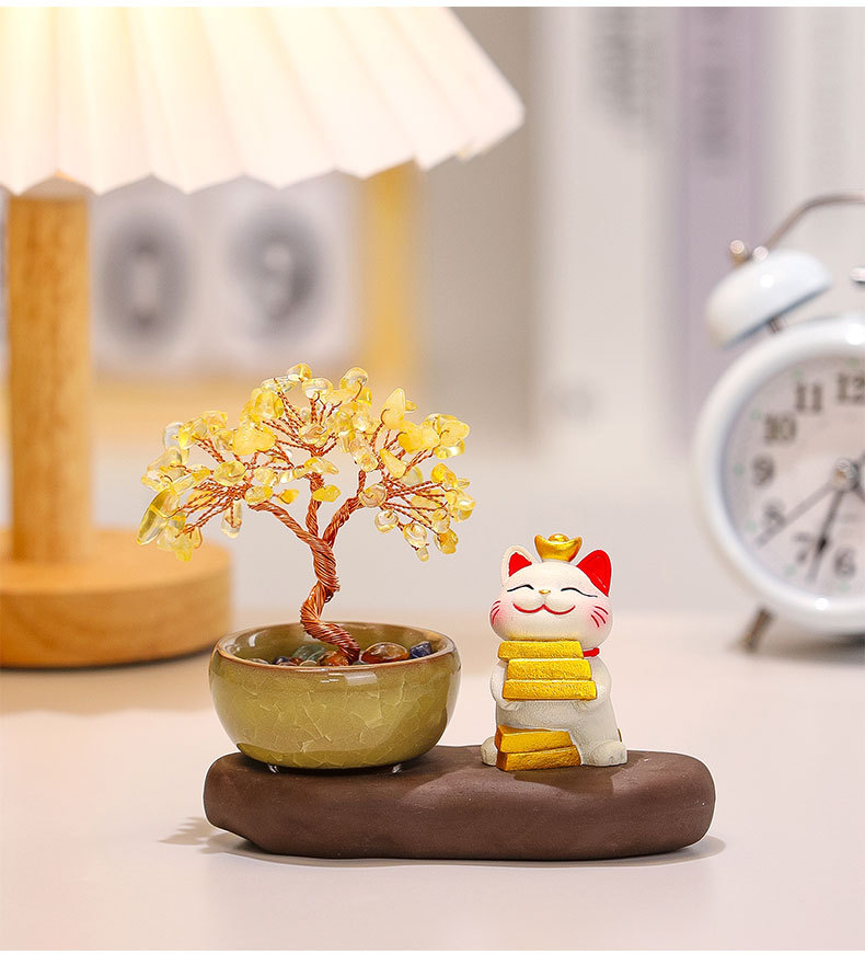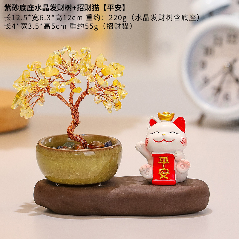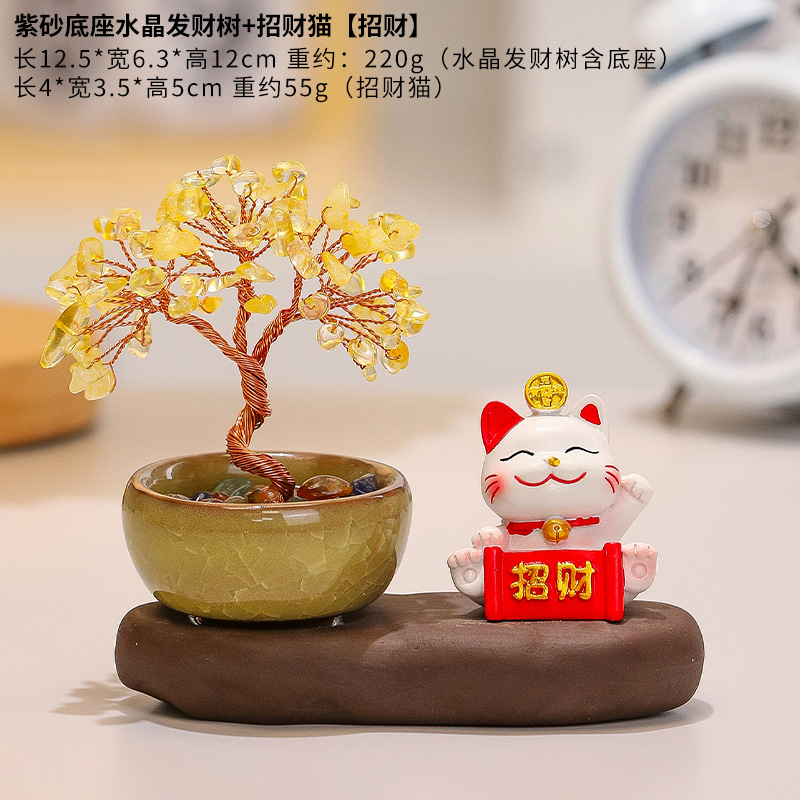 • 행운의 고양이 + 세라믹 바닥 크리스탈 트리