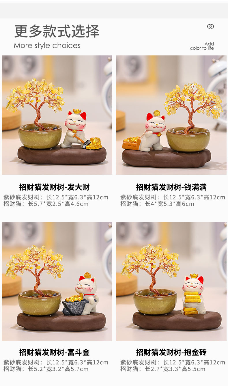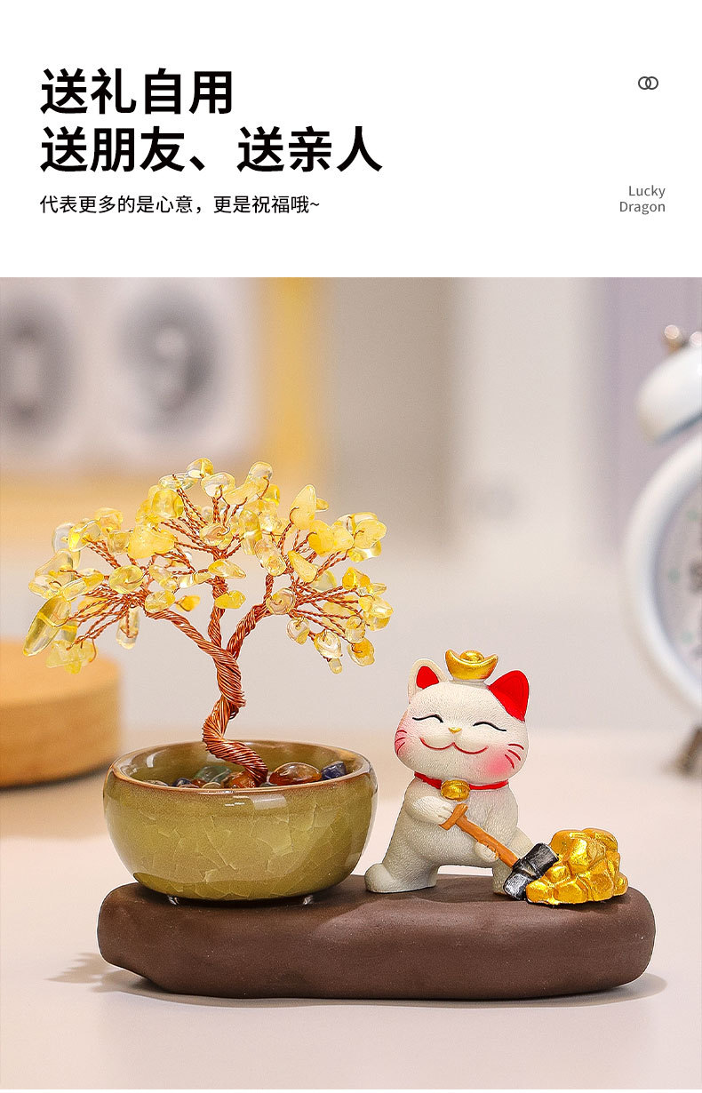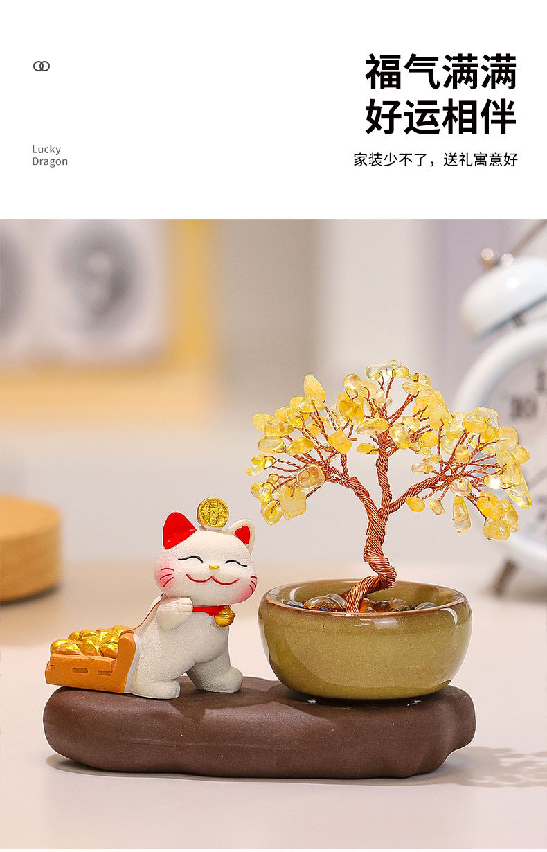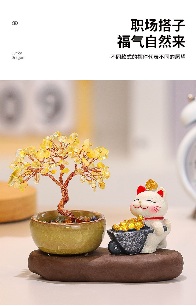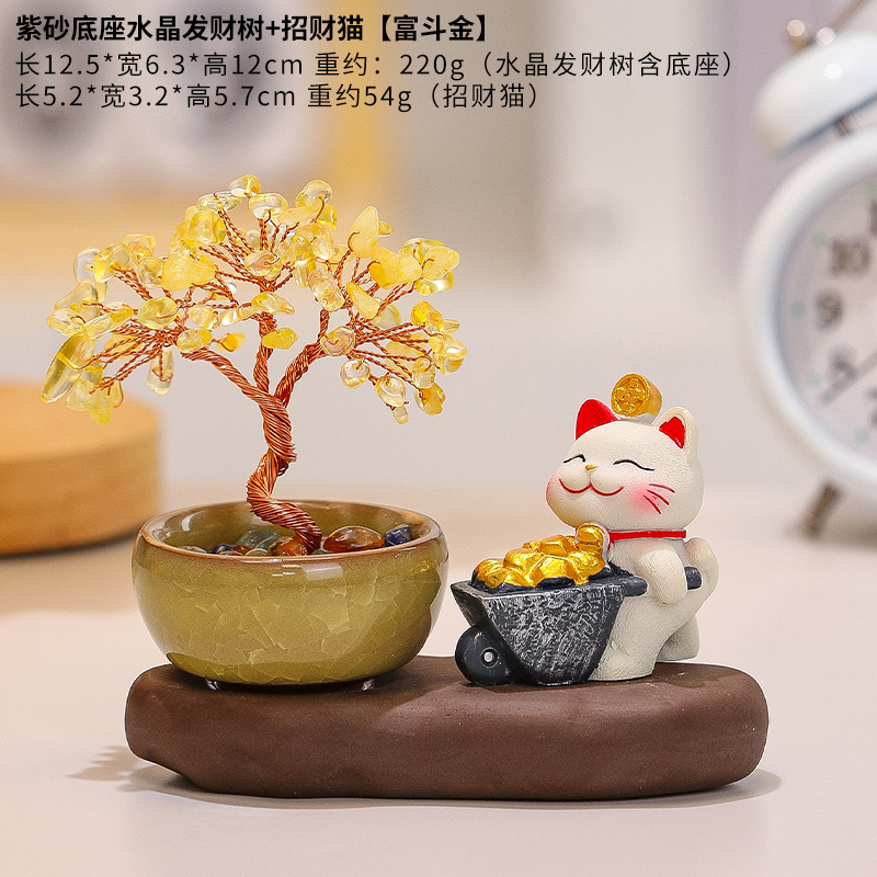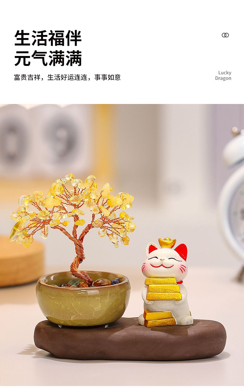 • 행운의 고양이 + 세라믹 바닥 크리스탈 트리