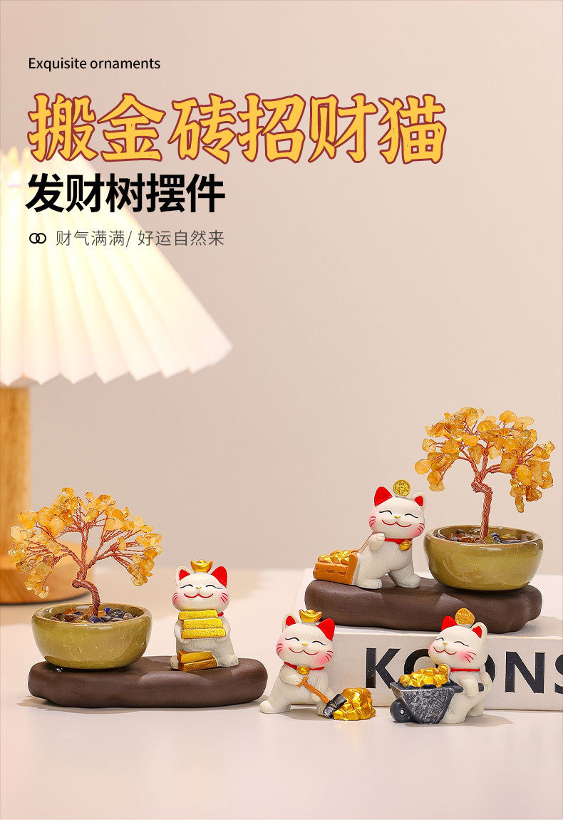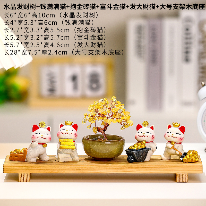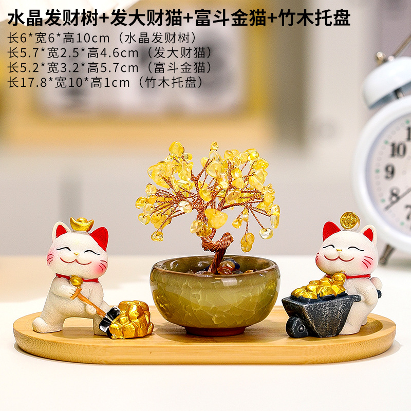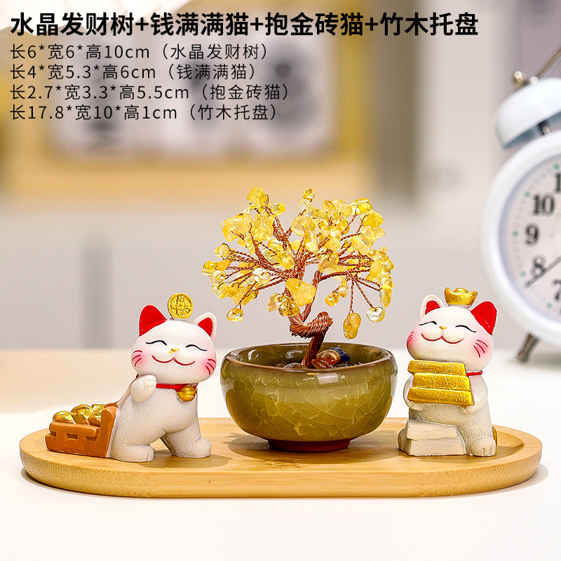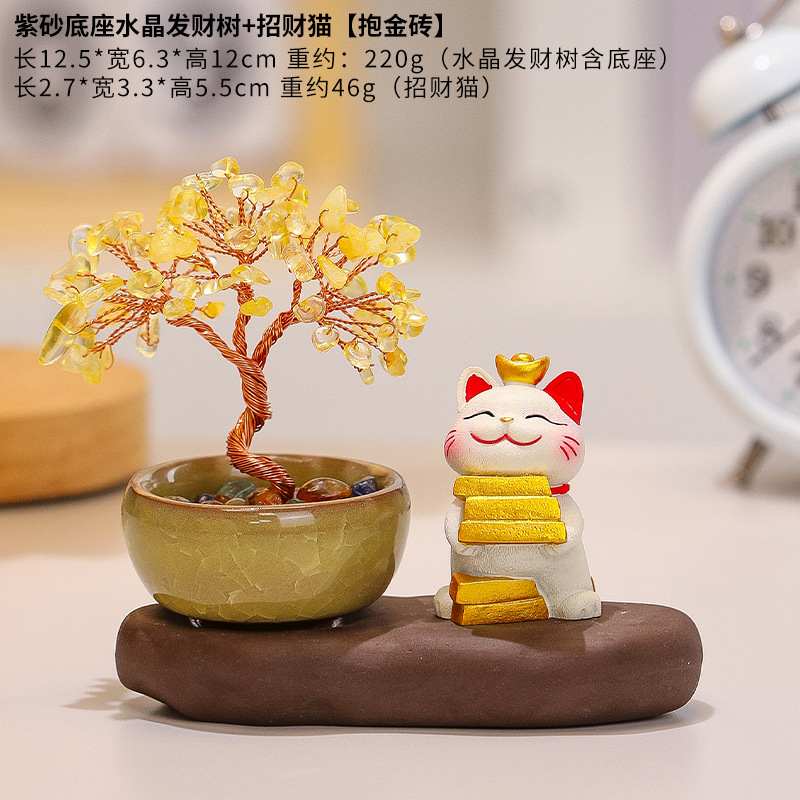 • 금 벽돌 행운의 고양이 + 세라믹 바닥 크리스탈 트리