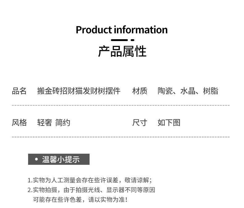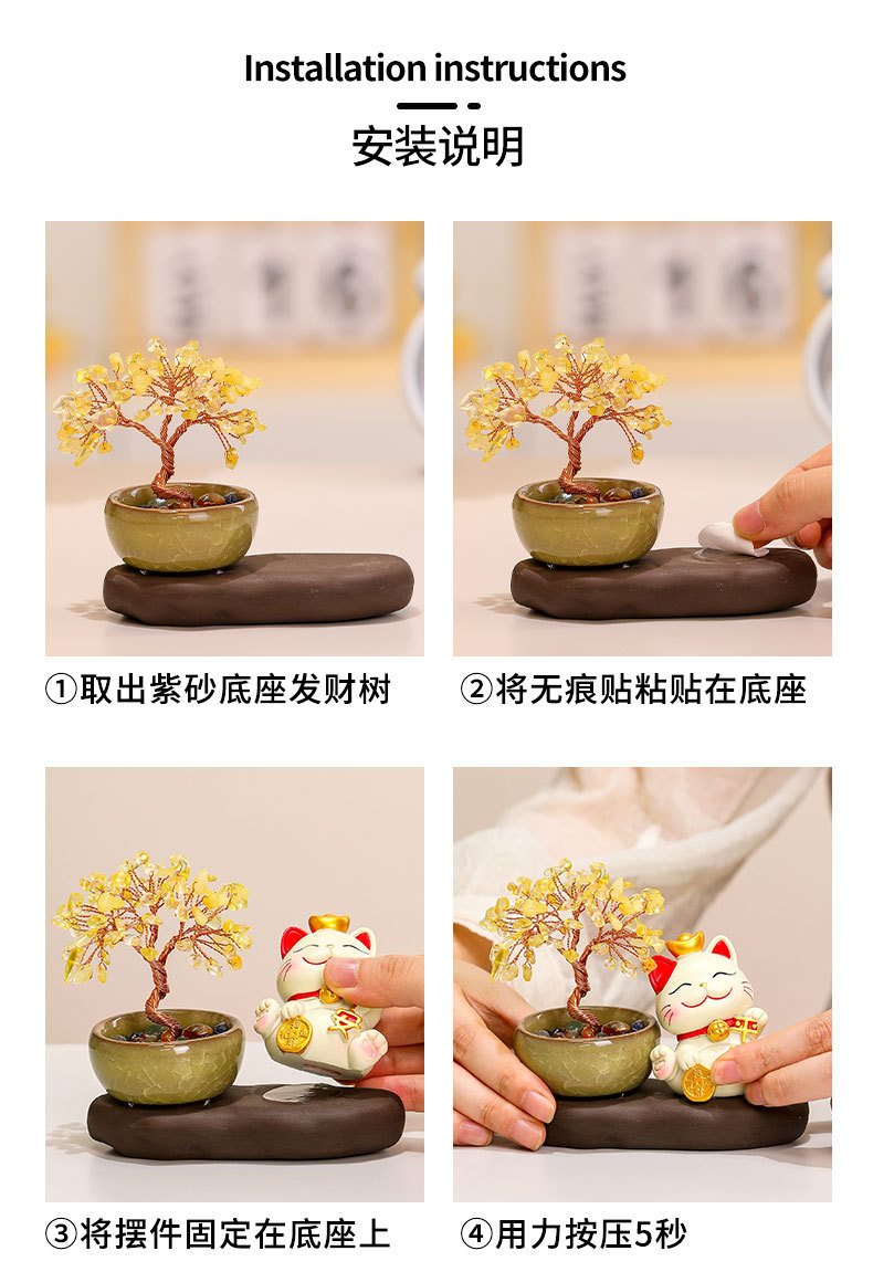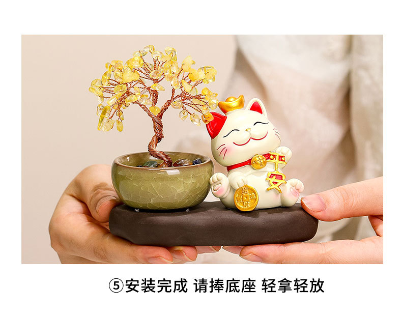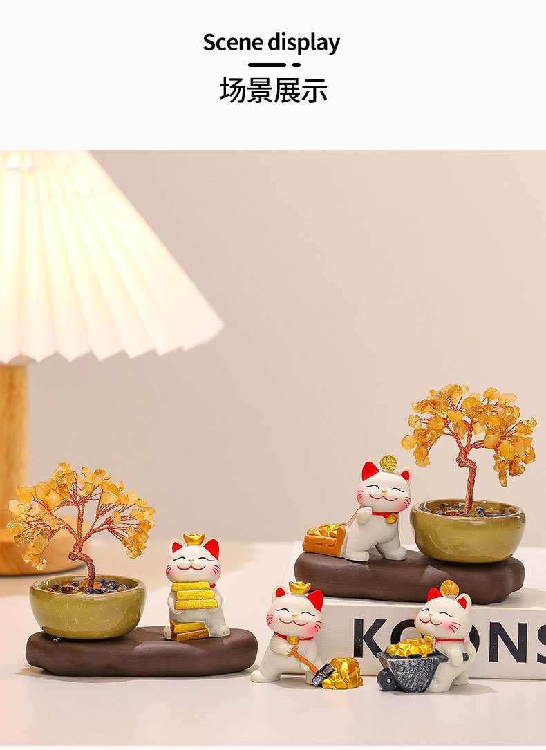 • 금 벽돌 행운의 고양이 + 세라믹 바닥 크리스탈 트리