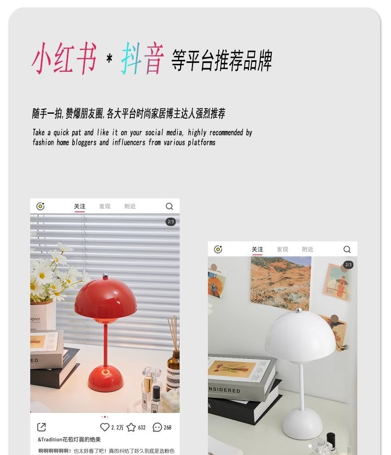 간단한 마카롱 테이블 램프 터치 버드 램프 분위기 충전식 테이블 램프 복고풍 미국 장식 버섯 야간 조명