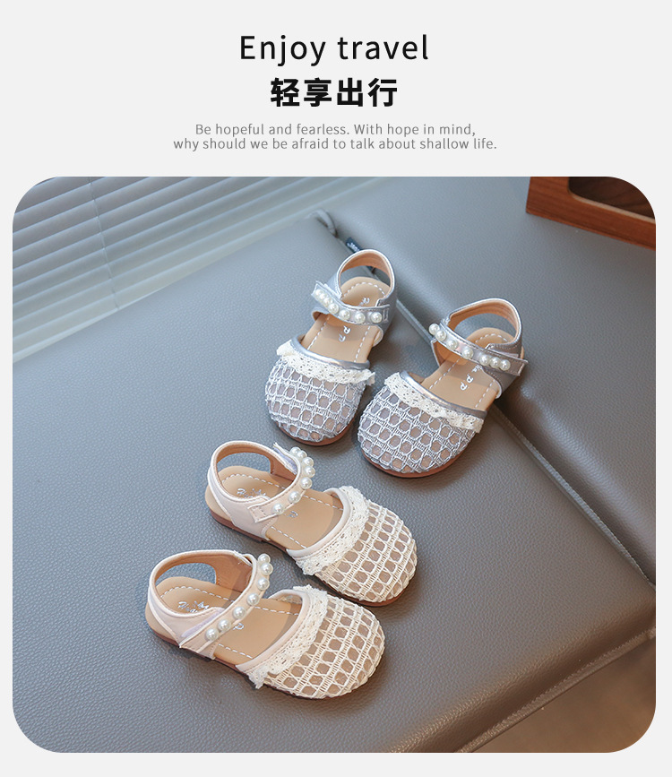 여자 샌들 여름 새로운 어린이 바오 터우 짠 공주 신발 어린 소녀 부드러운 밑창 유행 다목적 진주 신발스토어 가기
