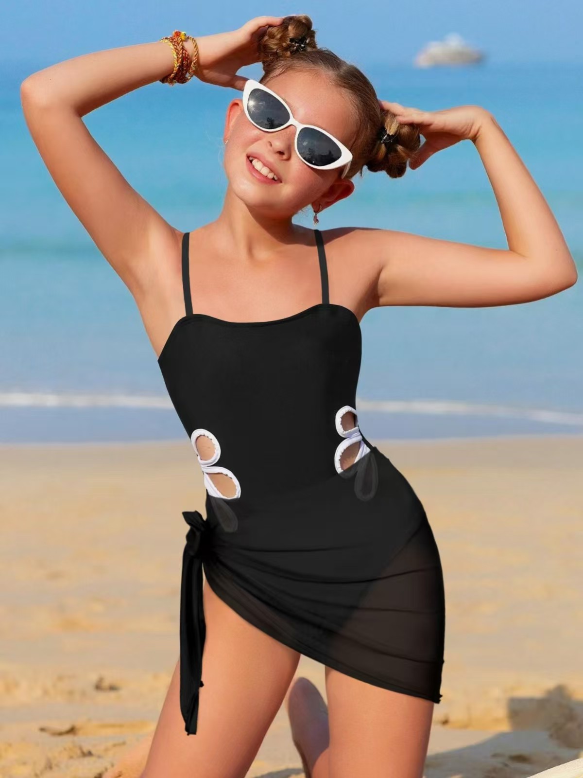 2025 새로운 크로스 보더 소녀 원피스 수영복 중공 해변 수영복 새로운 패션 대외 무역 소녀 유럽과 미국의 수영복스토어 가기