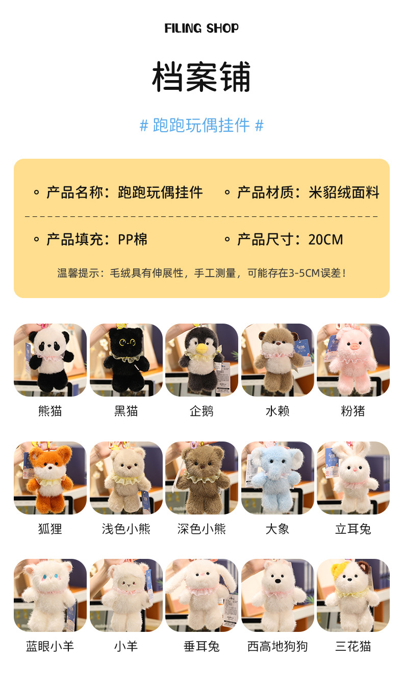 달리기 인형 강아지 펜던트 돼지 플러시 장난감 귀여운 고양이 키 체인 학교 가방 액세서리 테이블 동반자 인형스토어 가기