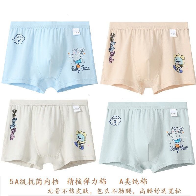 4-8세 어린이 순면 속옷, 남아 사각팬티, 중대형 아동 및 청소년 속옷, 학생 사각팬티