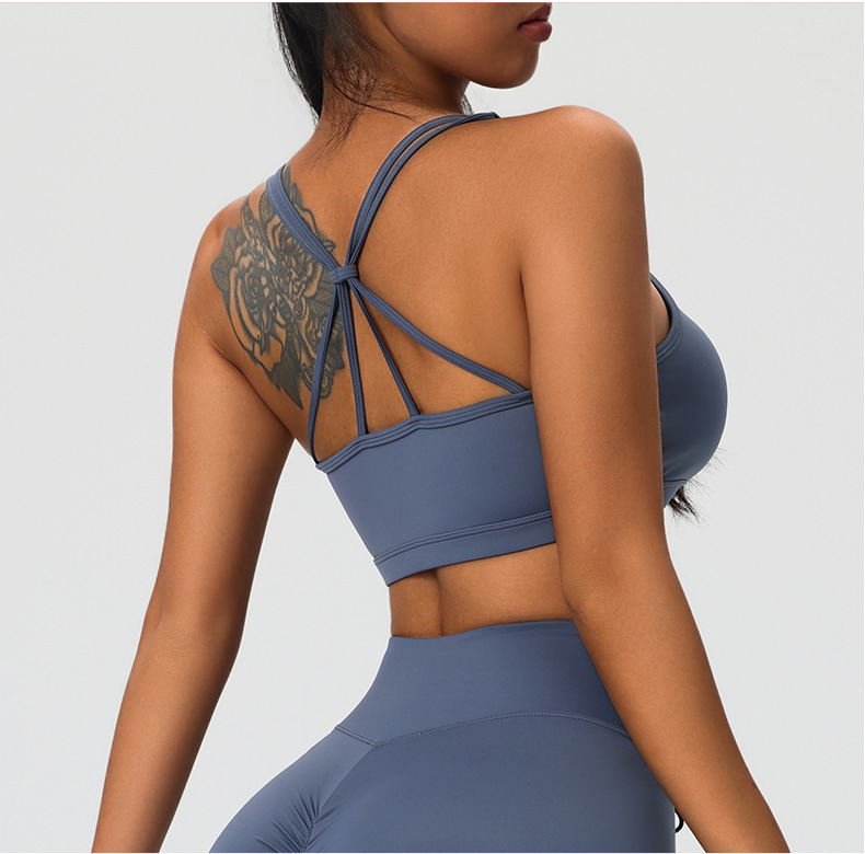 欧美瑜伽文胸女云感美背运动内衣肩带跑步健身背心上衣跨境