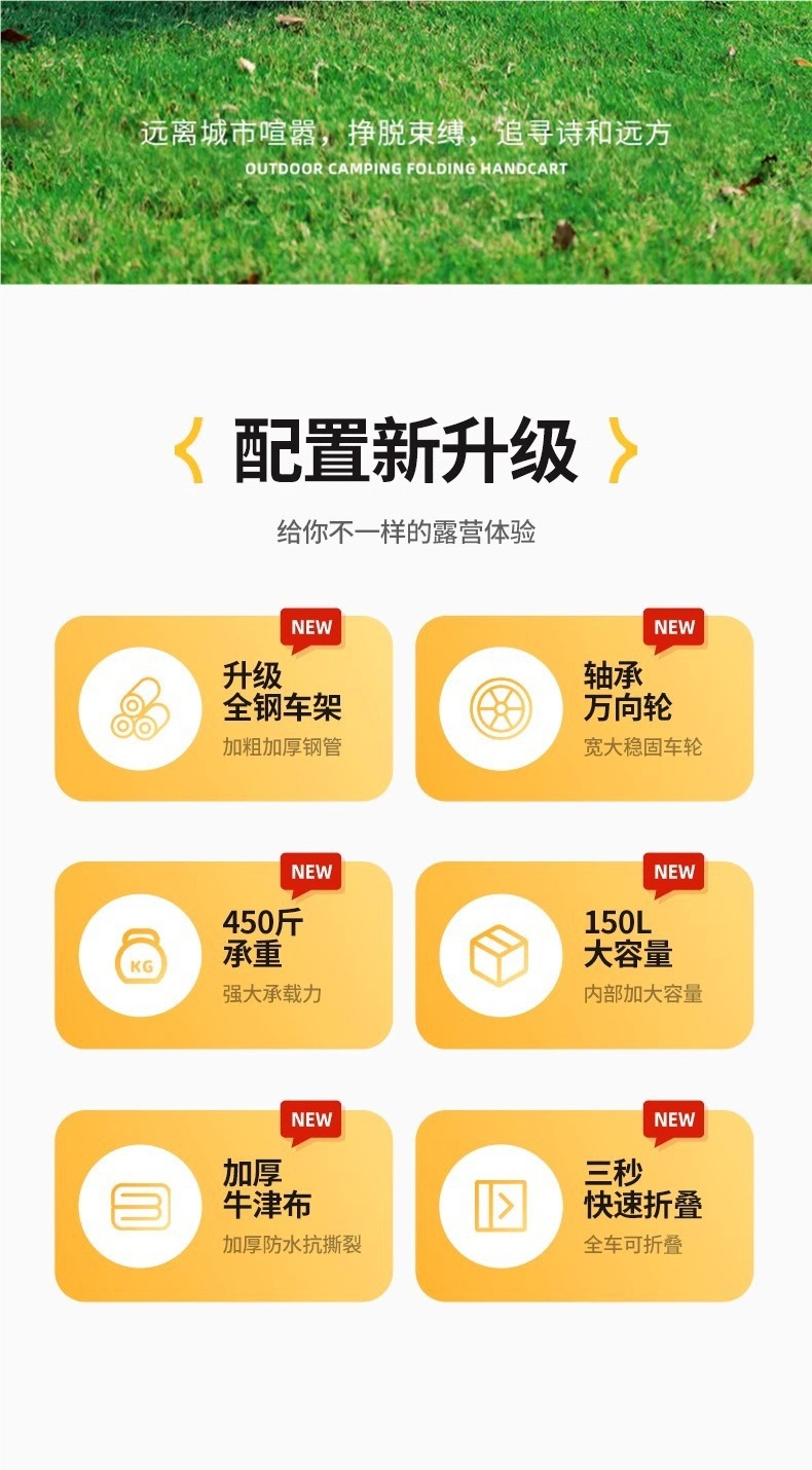 캠핑카 야외 접이식 카트 캠핑카 피크닉 카트 트레일러 캠핑 핸드 트롤리 스톨 트롤리 탄소강스토어 가기